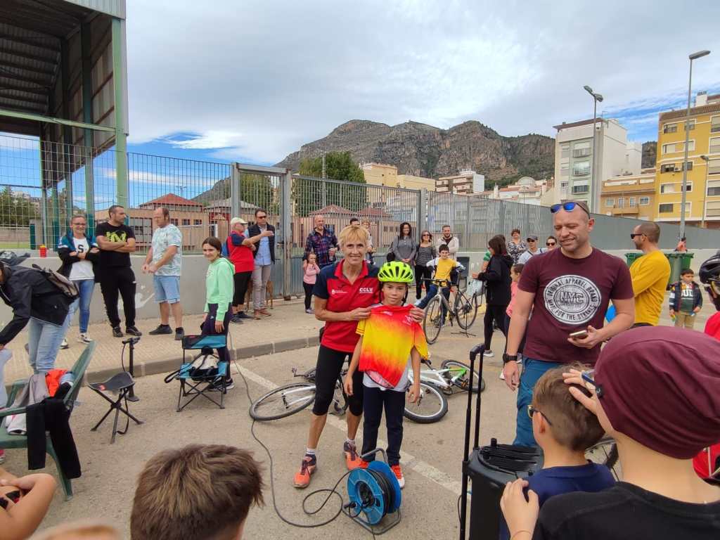 Tras la finalización del acto Rosa Sansaloni ha sorteado dos maillots suyos de campeona de España ganados recientemente y que sirvan para que estos jóvenes se apunten a la escuela decana en la Comunidad Valenciana que tantos alumnos tenían antaño. Todos los inscritos recibieron un botellín y una medalla conmemorativa.