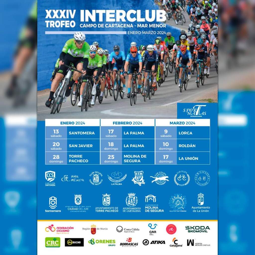 La Federación de Ciclismo de la Región de Murcia anuncia que ya están abiertas las inscripciones del XXXIV Trofeo Interclub Campo de Cartagena – Mar Menor que comenzará el 13 de enero en Santomera y finaliza el 17 de marzo en La Unión y contará con nueve jornadas.