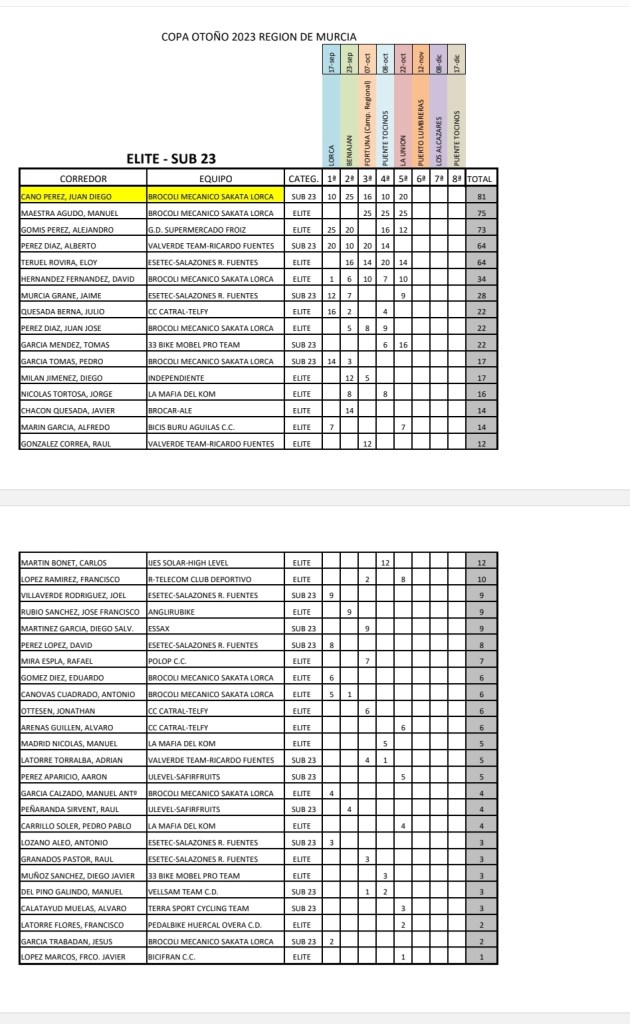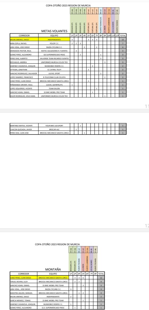 - VI Carrera Peña Ciclista La Pájara. Puente Tocinos. Clasificaciones