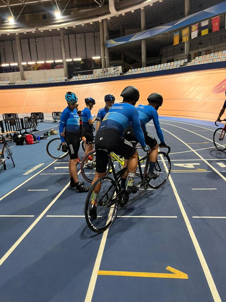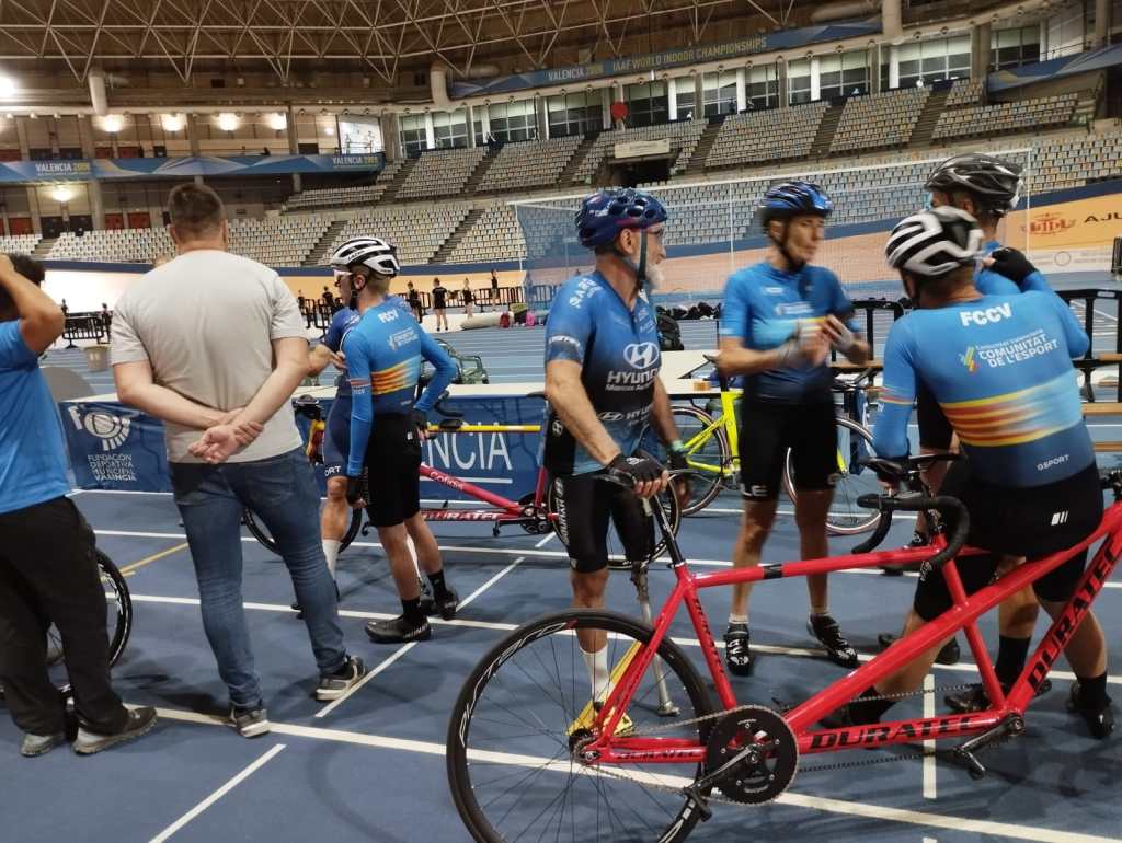 La Selección de la FCCV de Pista de Paraciclismo que dirige Vicent Perales ha comenzando hoy los entrenamientos en el Velódromo Luis Puig con la mirada puesta en los Campeonatos de España de 2024. En el calendario ya están fijadas las reuniones que se realizarán los días 27 de diciembre y 3 de enero. Están abiertas a todos los paraciclistas que deseen acudir. Se trata de entrenar las distintas modalidades Hoy se ha trabajado inicialmete las prueba de Velocidad, 200 metros, y, al final las de Velocidad por equipos.