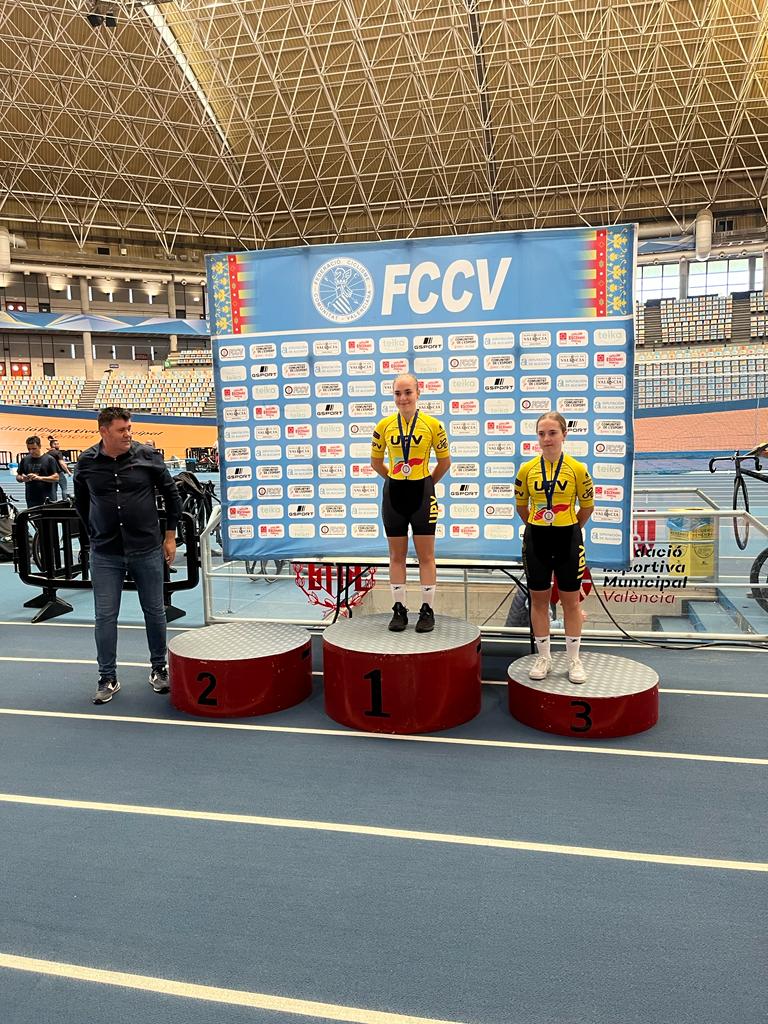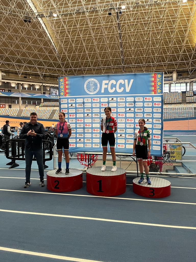 En féminas, Almena (135 puntos) se imponía entre las juniors ganando las tres pruebas, el scratch, la tempo y la eliminación, superando a Leyre Toledo (Teika-123) y a Vera Valero (Universidad Politécnica Valencia-120).