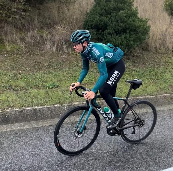 Eugenio Sánchez ha estado concentrado durante una semana en Orkoien (Navarra) con sus compañeros del Equipo Kern Pharma. Entre las pruebas a las que se sometió para conocer el estado de forma con el que iniciar los entrenamientos con el 2024 en el horizonte, hay una que le puso al límite de sus posibilidades. Es la del consumo máximo de oxígeno con gases. Con la información que se consigue en ella se obtienen los umbrales (límites) de potencia para sus entrenamientos, así como el consumo de grasas e hidratos de carbono durante el trabajo.