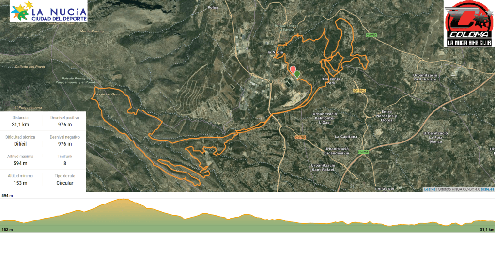 La recogida de dorsales será a partir de las 7,30 horas de la mañana. Esta edición tendrá un recorrido de 31 km. con un desnivel positivo de 976 metros, con sendas, trialeras y paso por el “mítico” Bikepark de La Nucía, por alguna de las zonas donde se celebró la “Super Cup Massi UCI 1”.