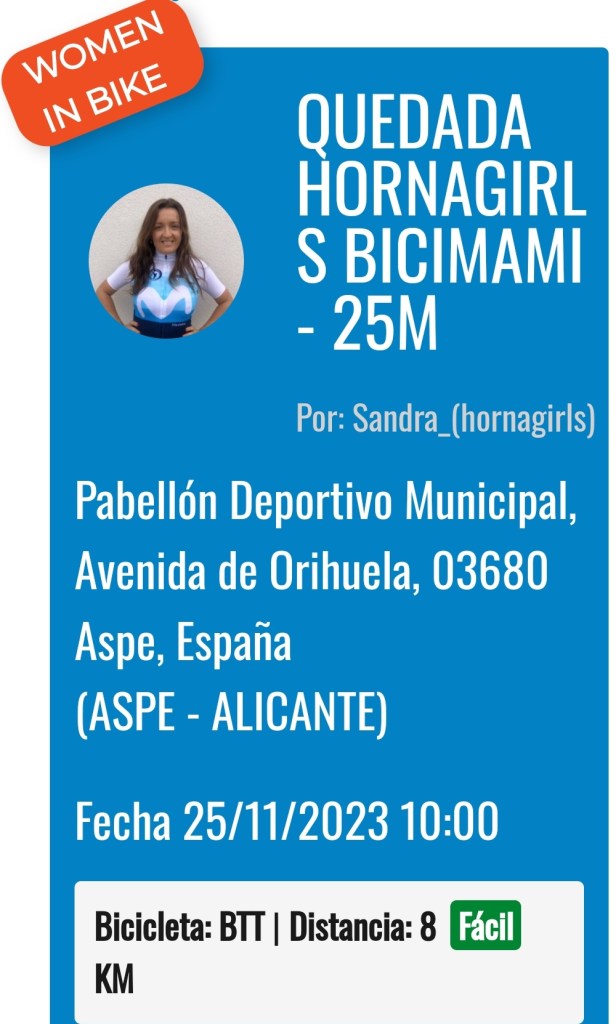 La historia de Hornagirls surge a raíz del proyecto WIB en junio del 2020 en Aspe con Sandra Lorenzo Segura como alma máter «Empecé a salir en bici de modo paseo con unas amigas, para quitarme ese “mondoguillo de después del parto” y no me lo quité, pero me involucre en el maravilloso mundo de la bici tras la necesidad de encontrar chicas molonas en mtb en mi pueblo», comenta la fundadora de esta bonito iniciativa y nueva presidenta del CC Hornagirls.