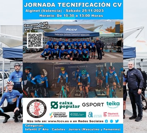 Javier Cabanes, seleccionador de ciclocross de la Comunidad Valenciana, acompañado de David Ivars y Raúl Ballester, imparten esta mañana una jornada de tecnificación de CX a 32 niños, en el mismo circuito en el que se disputará el domingo CX de Alginet, prueba de la Challenge de la Comunitat Valenciana. Dirigida a infantiles de segundo año, cadetes y júniors, tanto masculinos como femeninos, comenzará a las 10.30 y finalizará a las 13 horas.