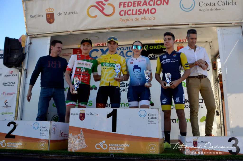 Rafael Meca (Sumgasur), con Alberto Manzano (Ikascola), segundo, e Irene García (Delaabuela) han sido los mejores cadetes; Juan Tejedor (Terra Sport) y Amalia Rubio (Terra Sport), en júniors; José Manuel Cayuela (Encacon), con David Penalva (Mundobike), tercero, en Máster 30; Pedro Luis Castillo (Anglirubike), en M40; Francisco Cánovas (Terra Sport), en M50; y Miguel Romero (Pinatar), en M60. Cayuela es líder en su categoría del CX Race Circuito Región de Murcia.