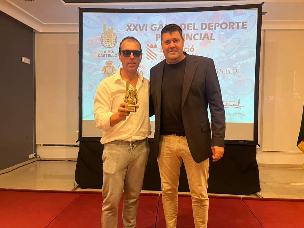 «Desde la Diputación de Castellón apoyamos el deporte, creemos en el deporte y nos sentimos orgullosos de nuestros deportistas, un sentimiento que preside en esta gala». Así de contundente se mostró el diputado de Deportes, Iván Sánchez, en la clausura de la XXVII Gala Provincial del Deportes que organiza la Asociación Provincial de Prensa Deportiva y en la que se distinguió al ‘pilotari’ Diego López, conocido en el mundo de la pelota valenciana como Diego d’Onda, como mejor deportista absoluto del 2023 tras su gran actuación en el Mundial y por su gran temporada en la que ha cosechado numerosos éxitos. El diputado de Deportes y la presidenta de la APDCS, Yolanda Peris, fueron los encargados de entregar la distinción al joven ‘pilotari’ ondense.