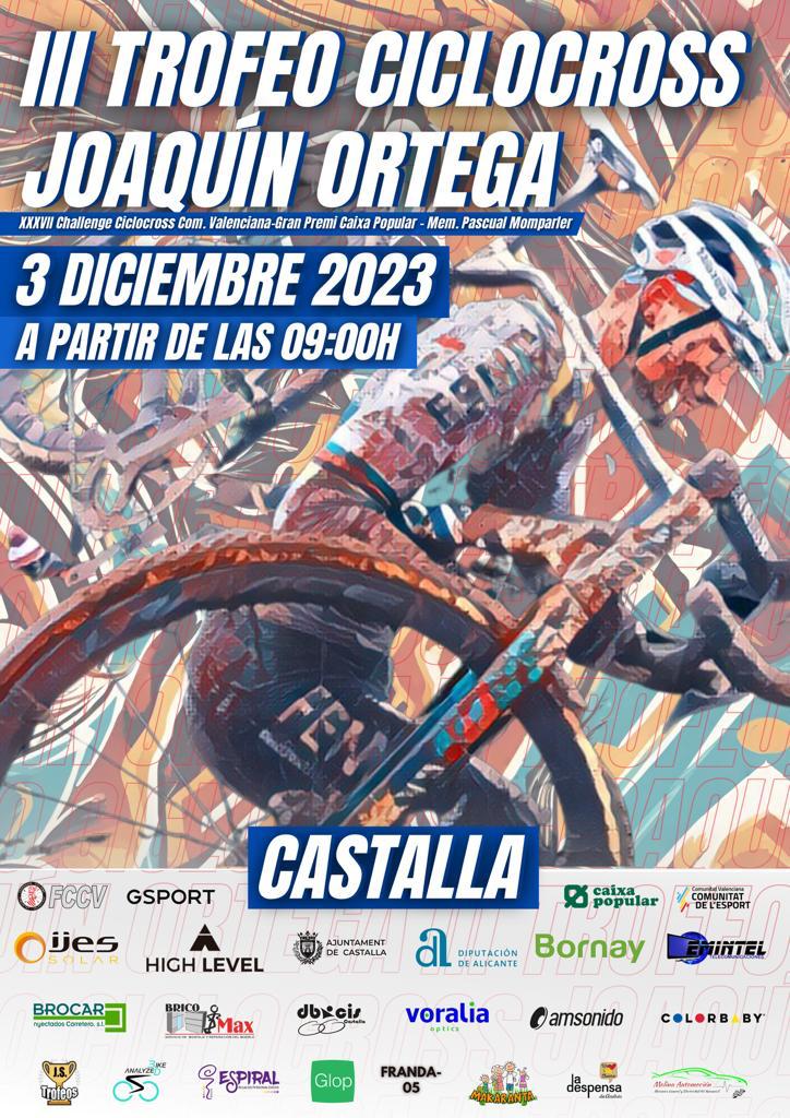Hoy domingo, día 3 de diciembre, se disputa en Castalla el III Trofeo de Ciclocross Joaquín Ortega. La novena prueba de la Challenge de CX de la Comunitat Valenciana-Gran Premi Caixa Popular-Memorial Pascual Momparler comenzará a partir de las nueve de la mañana. La oficina permanente estará situada en el calle Riu Segura.