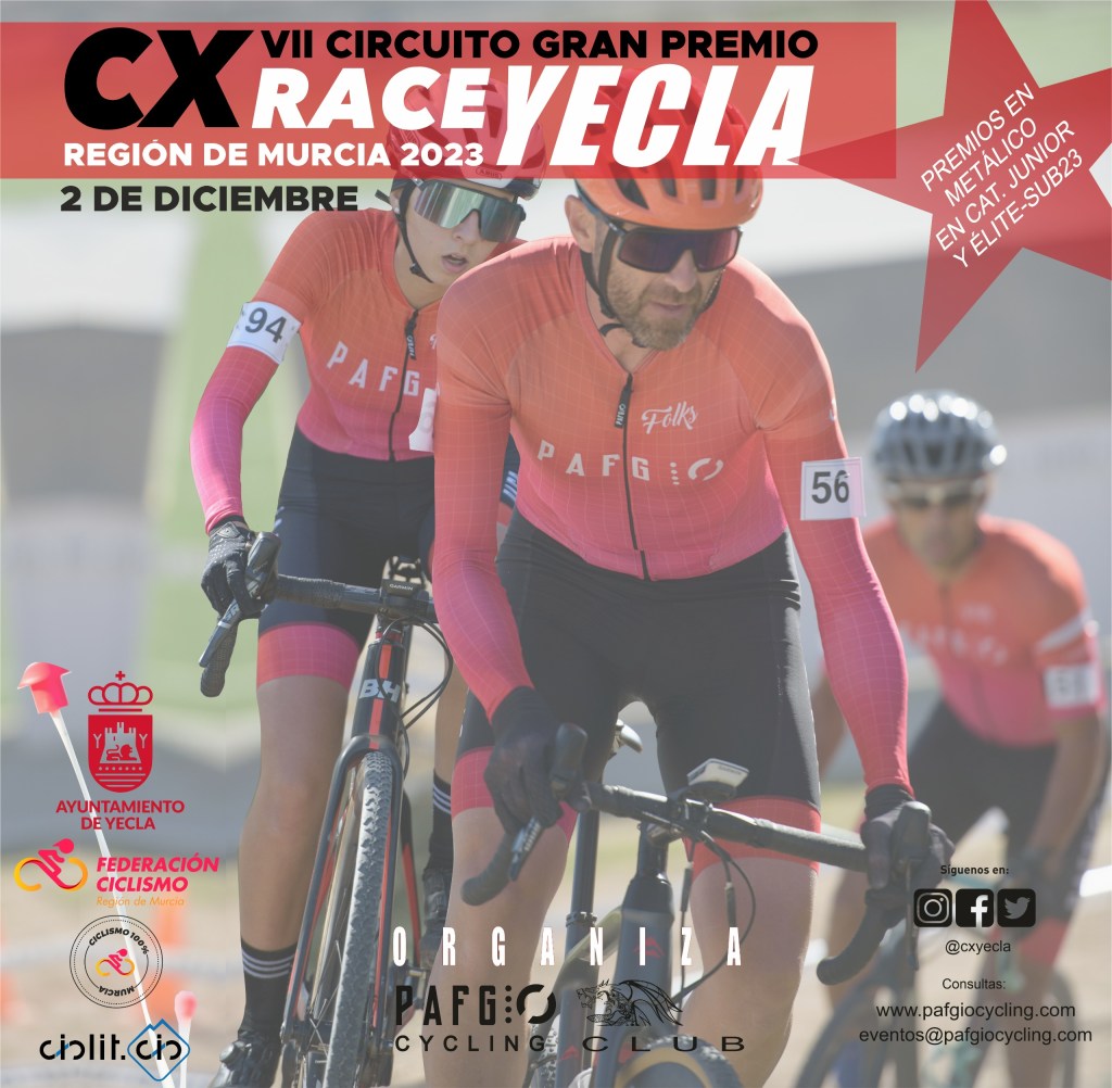 El sabado, día 2 de diciembre, se disputa el CX RACE Yecla, prueba puntuable del VII Circuito Región de Murcia. Manuel Sánchez Aldeguer (Mundobike) y José Manuel Cayuela (Encacon) fueron los ganadores de la última carrera del Torneo disputado en San Javier.