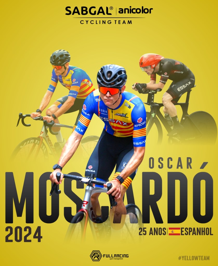 Óscar Moscardó (Carcaixent, 2 de junio de 1998. Residente en Alberic) debutará en el pelotón de Portugal y como corredor profesional en 2024, con el Sabgal / Anicolor Professional Cycling Team. Llega procedente del Equipo Essax alicantino en el que ha militado las últimas tres campañas. Un ciclista polivalente y todoterreno, dispuesto a trabajar y evolucionar a lo largo de la nueva temporada, que ve como una gran oportunidad en su carrera, donde quiere demostrar todo lo que es capaz de hacer.