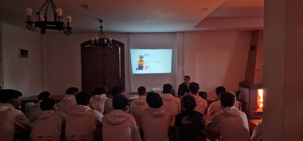 Por la tarde, se realizaron tres charlas. Una de nutrición, ofrecida por el ex-corredor del equipo, Martín Fajardo; otra de psicología, impartida por el auxiliar Sebas Alzate; y una tercera, sobre entrenamiento, por Alejandro Gómez.