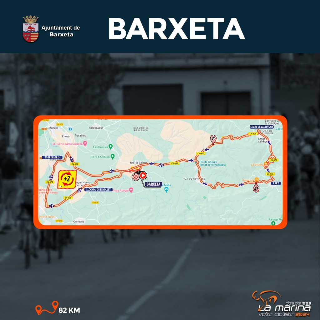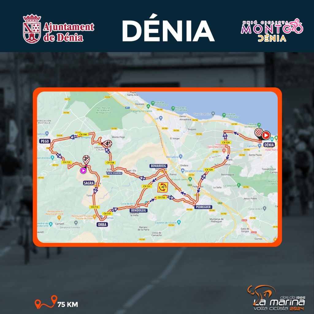 La Volta La Marina 2024 comenzará el 14 de enero en Dénia y finalizará en Parcent el 17 de marzo. Son ocho jornadas las que cuenta la ronda. Además de etapa inicial en Dénia y la final en Parcent, el resto de jornadas son las siguientes: en Bolulla (Etapa 2-28 de enero); Pego (Etapa3-4 de febrero); Benissa (Etapa 4-11 de febrero); Barxeta (Etapa 5- 25 de febero); Pedreguer (Etapa 6-3 de marzo); además del Trofeu Femines de Ondara, previsto para el 10 de marzo.