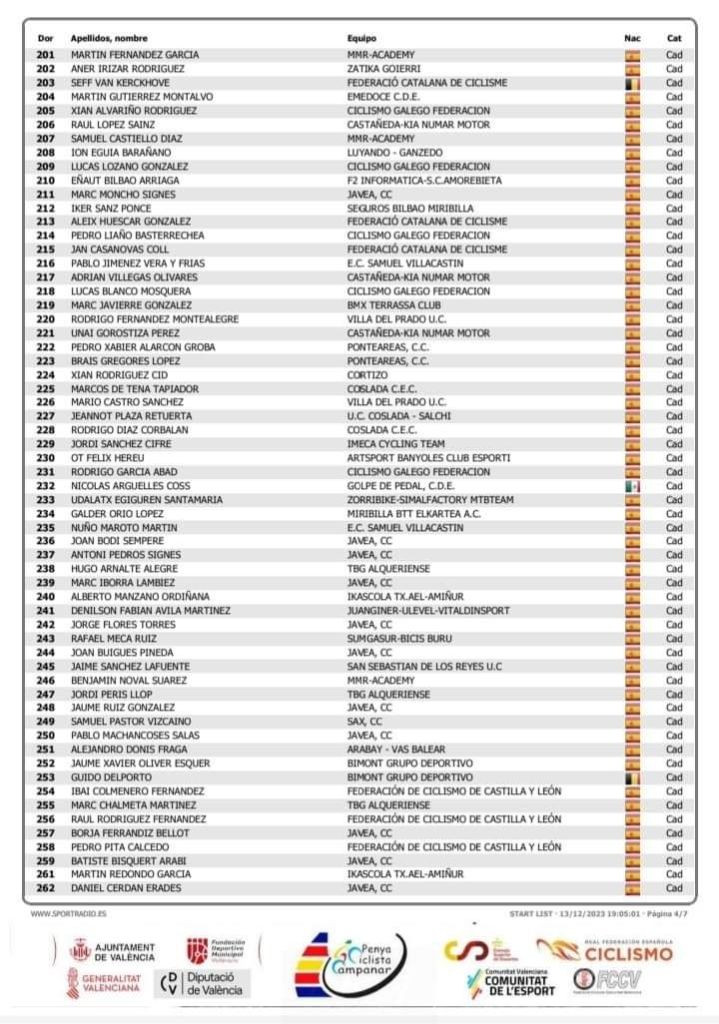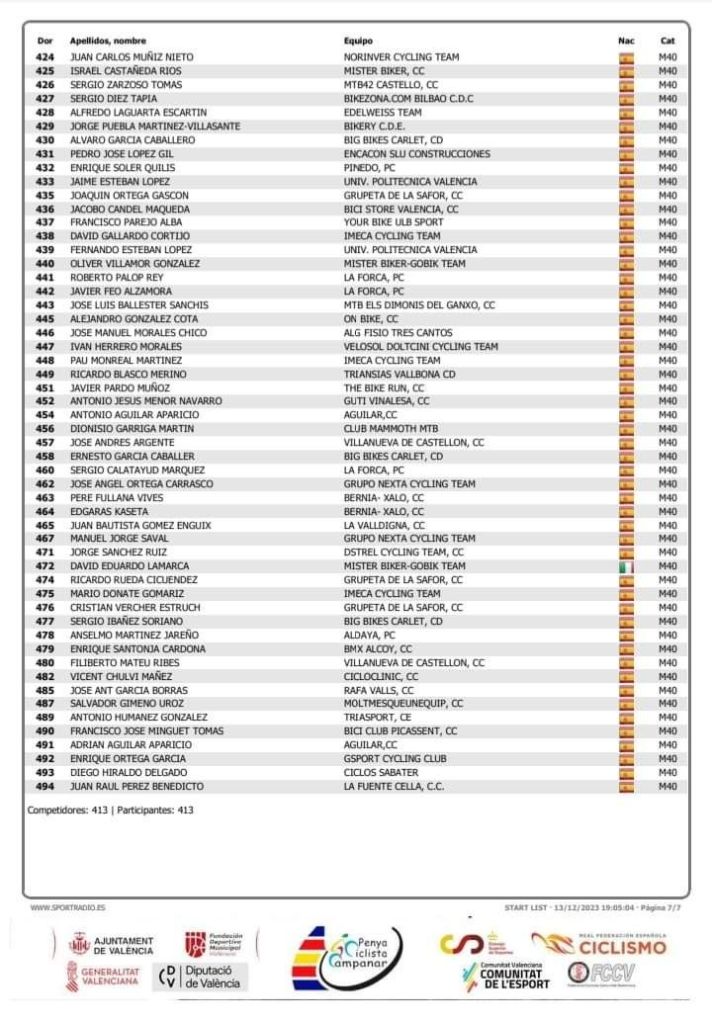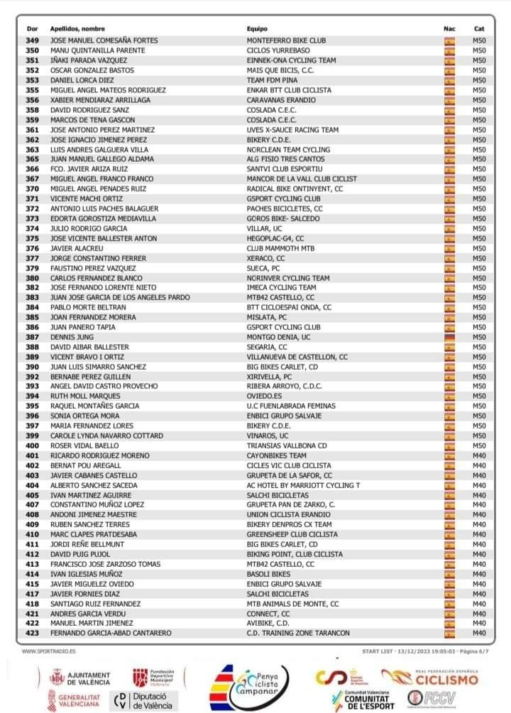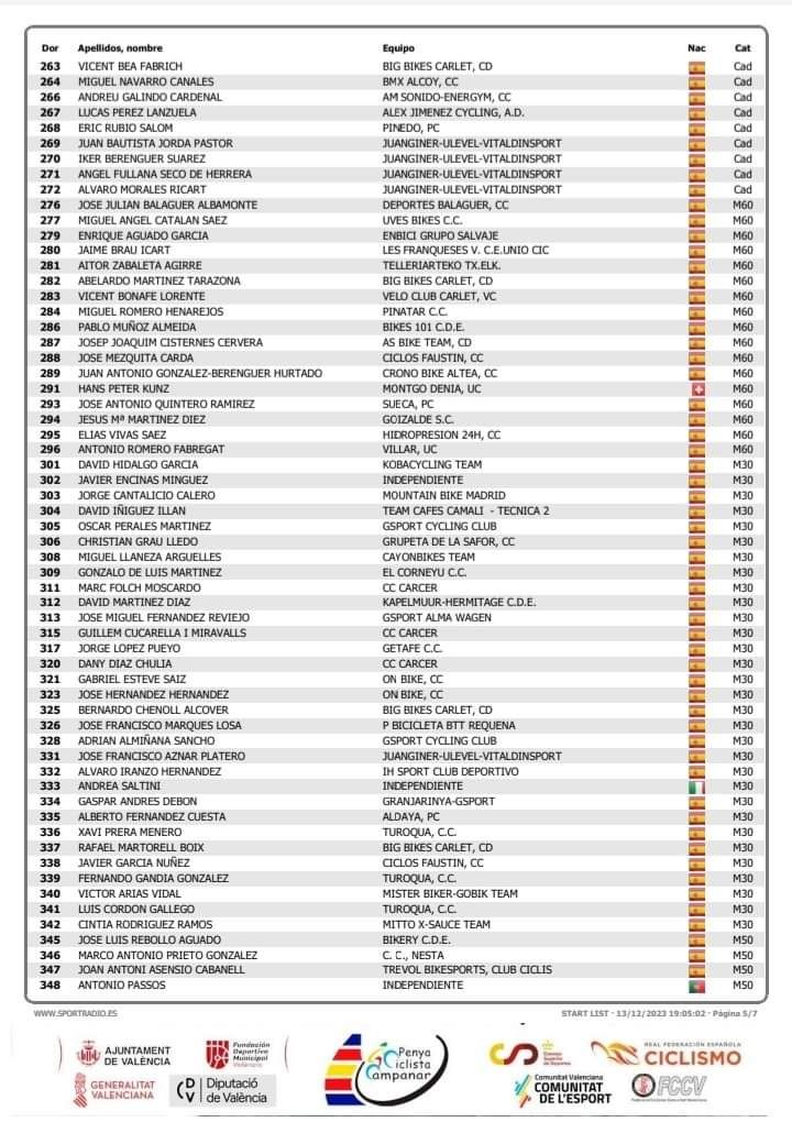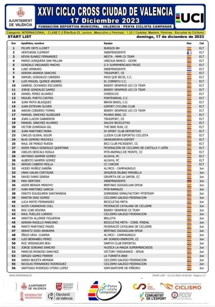 Entre los corredores que estarán presentes en las pruebas valencianas destacan los dos primeros clasificados, Mario Junquera (106 puntos) y Gonzalo Inguanzo (104), quienes pelearán por hacerse con el título nacional en estas dos pruebas. Enfrente, tendrán a corredores de renombre como el campeón de España Felipe Orts, Kevin Suárez, el holandés Luke Verburg o el galo Clément Venturini, además de los siempre batalladores sub23 como Raúl Mira, Miguel Rodríguez o Javier Zaera.