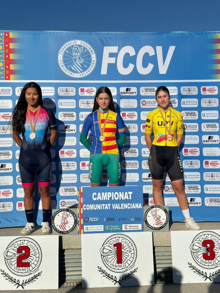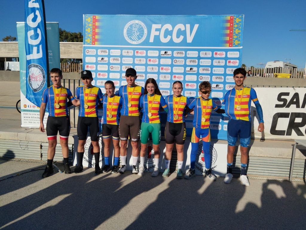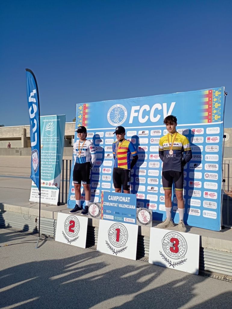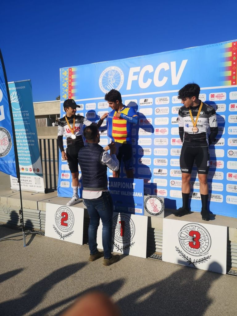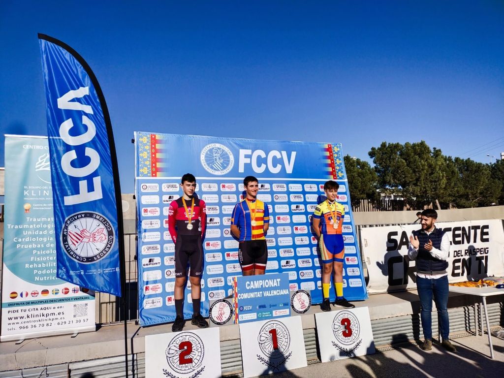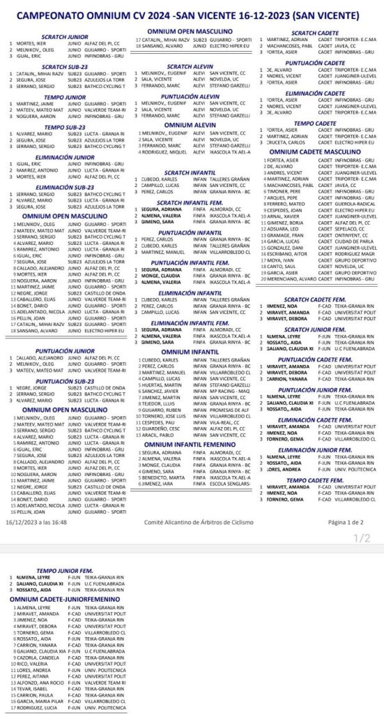 Eugenif Melnikov (San Vicente), en Alevines; Karles Cubedo (Talleres Grañana) y Adriana Segura (Almoradí), en Infantiles; Asier Fortea (Infinobras) y Amanda Miravet (UPV), en cadetes; Leyre Almena (Teika) y Mateo Matey Mateev (Valverde Team), en júniors; y Sergio Serrano (Batho Cycling), en Sub 23, son los nuevos campeones autonómicos de Ómnium tras una competición que se ha disputado en el velódromo Manuel Guijarro de San Vicente del Raspeig.