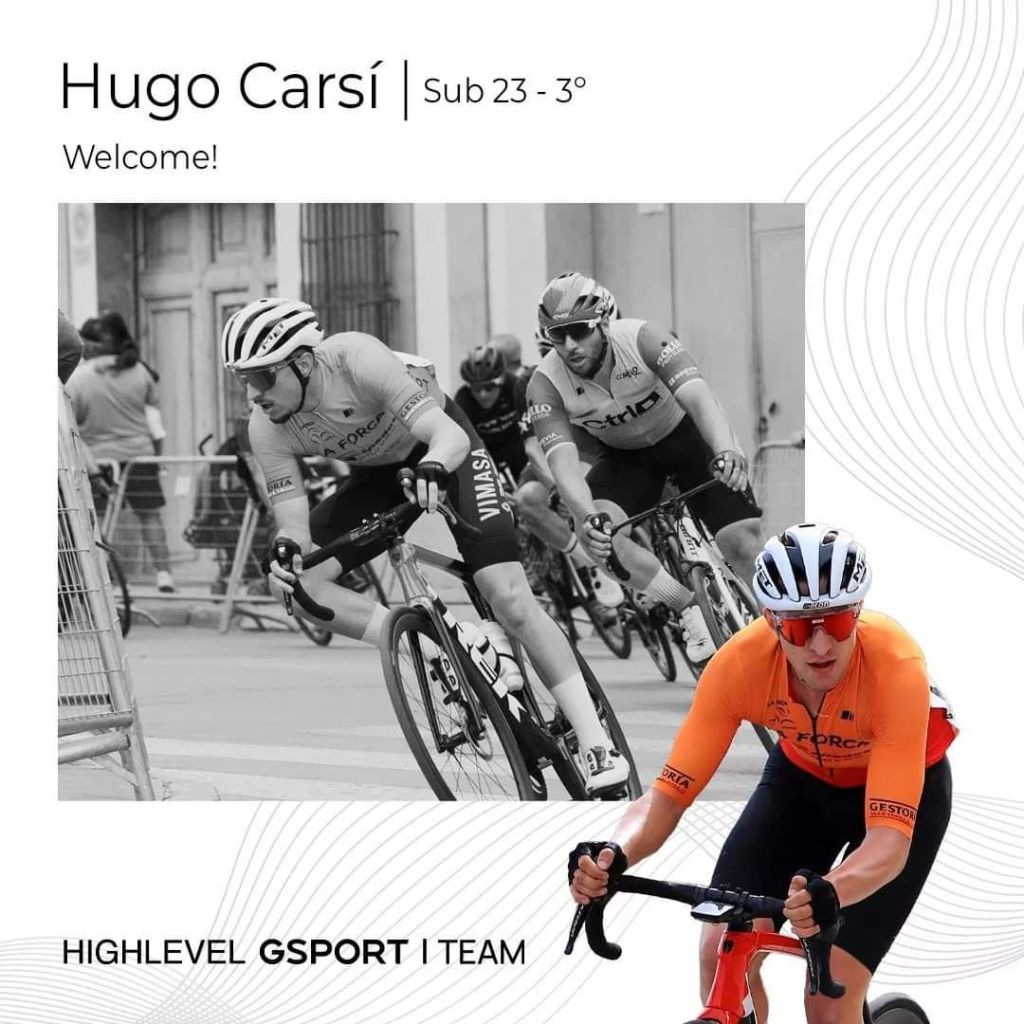 Hugo Juan Carsí (Canals, 2003) se une a la lista de refuerzos del equipo High Level-Gsport para la temporada 2024. Tras la renovación de 10 ciclistas del pasado ejercicio llegaron los fichajes de Álex Grau (Cárcer, 2005), Sergio Serrano (Vila-real, 2005), Marc Aranda (Viladecans, 2005), Joan Cadena (Tarragona, 2004), y, ahora se anuncia el de Hugo Juan Carsí.