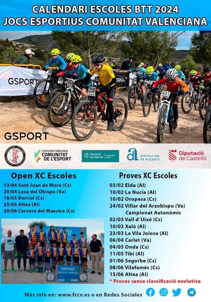 Las escuelas de ciclismo BTT ya tienen su calendario para 2024. Cuenta con 18 pruebas, cinco de ellas puntuables para el OPEN DE LA COMUNITAT VALENCIANA y el resto sin clasificación evolutiva.