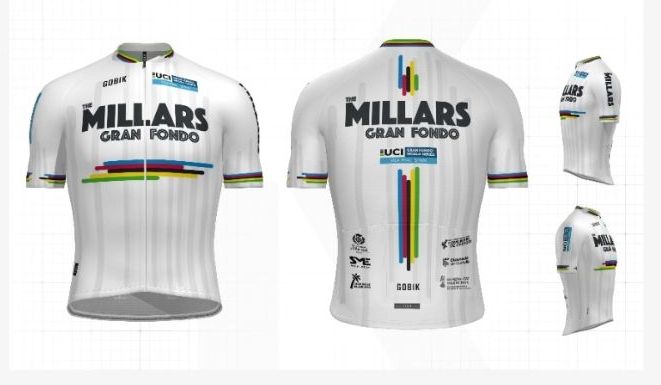 Estamos muy orgullosos de presentar el que será el maillot oficial de esta primera edición del evento. La prenda elegida cuenta con la calidad asegurada de Gobik, que como se anunció hace unos días, tiene el privilegio de vestir a los ciclistas del Ineos-Grenadiers. El diseño evoca la característica principal del evento, ser el único en España a través del cual te puedes enfundar el maillot arco iris de Campeón del Mundo de tu grupo de edad, siendo The Millars donde puedes conseguir esta clasificación para el mundial.