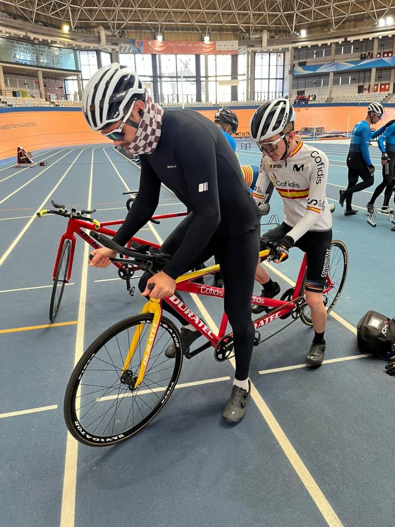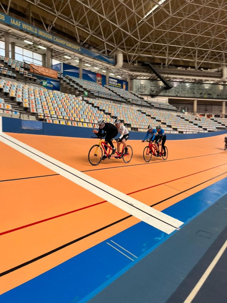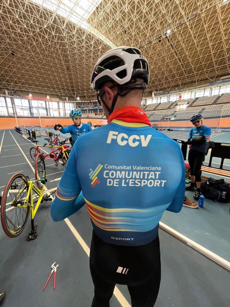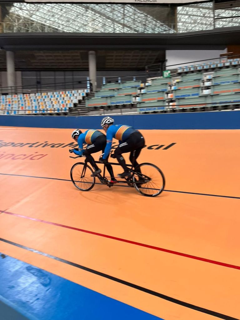 La Selección de la FCCV de Pista de Paraciclismo que dirige Vicent Perales ha realizado hoy su segundo entrenamiento en el Velódromo Luis Puig con la mirada puesta en los Campeonatos de España de 2024 que tendrán lugar en Galapagar los días 23, 24 y 25 de septiembre. Hoy se ha insistido en la prueba del Kilómetros y en la salida del bloque. Han acudido la cita los tándems Nacho Rodrigo y Óscar Hernández, Javi Vaquero y Julio Rodrigo y Rubén Capdevila y Vicent Perales. Y de la categoría C han estado en la sesión de trabajo Rosa Sansaloni, Sergi Altur, Jesús Mateu, Modest Vicent Pascual y José Roldán. Vicent Perales y Pascual Orengo han ejercido de técnicos.