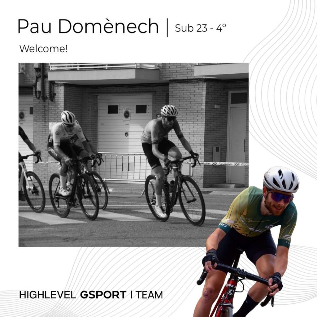 Pau Domènech (Les Borges Blanques, 6 de diciembre de 2002) llega al High Level Gsport Team procedente del Ciclos Oleka. La plantilla de la escuadra gallega poco a poco se va configurando y volverá a ser muy competitiva tras batir récords en 2023. Domènech ha sido el último en llegar. Tras la renovación de 10 ciclistas del pasado ejercicio han llegado a la escuadra de Antonio Llopis los refuerzos de Álex Grau (Cárcer, 2005), Sergio Serrano (Vila-real, 2005), Marc Aranda (Viladecans, 2005), Joan Cadena (Tarragona, 2004), Hugo Juan Carsí (Canals, 2023) y, el mecionado Domènech.
