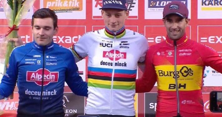 Mathieu van der Poel ha logrado un nuevo triunfo. Ha sido claro dominador de una Exact Cross Loenhout en el que el barro ha sido protagonista. Gran carrera de Felipe Orts (Burgos BH), que al final ha sido tercero luchando hasta el úlimo metro por la segunda plaza con Gianni Vermeersch. Ryan Kamp termina cuarto. El esprint final por los dos puestos del podio que ha dejado libres el neerlandés ha sido espectacular. El vilero lo ha dado todo para subir al cajón después de una prueba espectacular, que incluso llegó a liderar en los primeros compases. Ya se puede decir que el ciclista alicantino es capaz de codearse con los mejores. Lo de hoy es histórico.