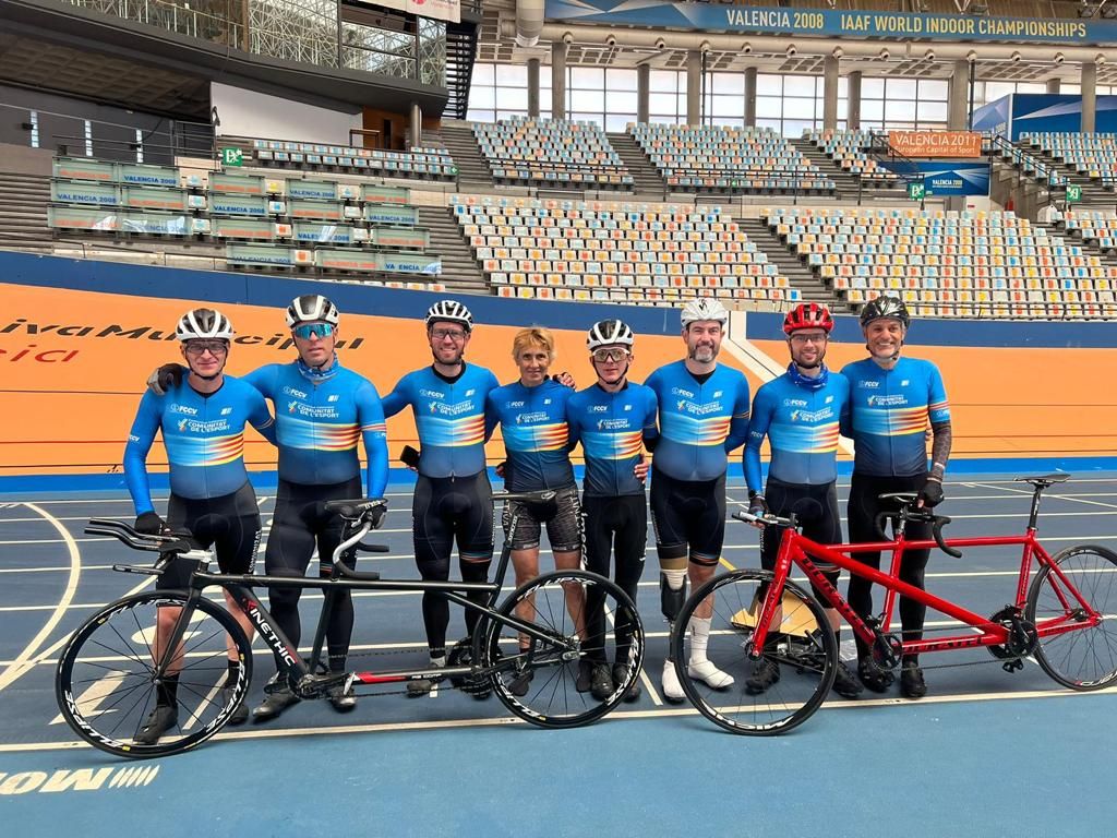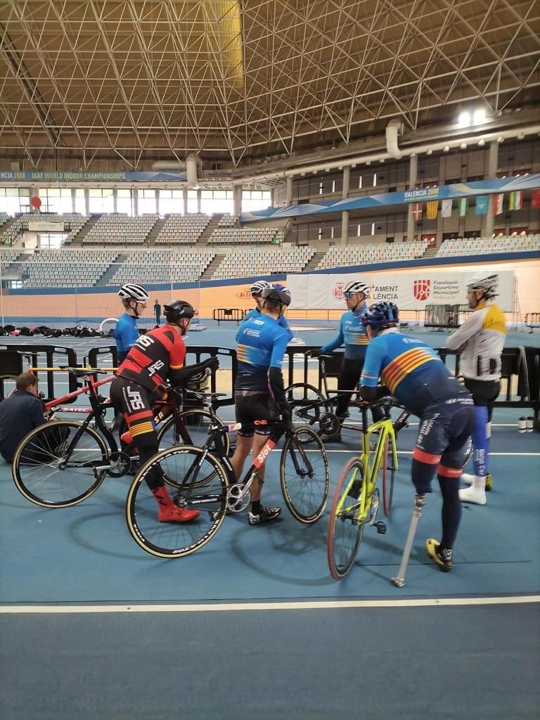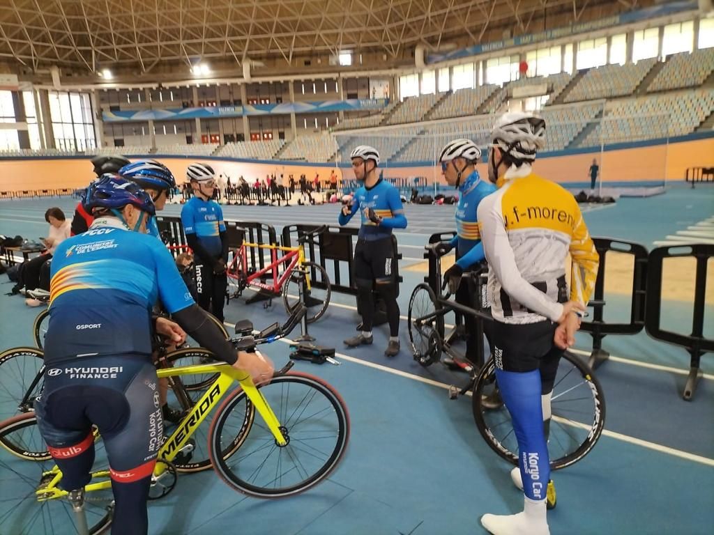 La Selección de la FCCV de Pista de Paraciclismo que dirige Vicent Perales ha realizado hoy su tercer entrenamiento en el Velódromo Luis Puig con la mirada puesta en los Campeonatos de España de 2024 que tendrán lugar en Galapagar los días 23, 24 y 25 de marzo. Hoy se ha hecho entrenamiento de Persecución. Primero han realizado un calentamiento, luego una serie de la distancias en las que compiten cada uno y finalmente un test. El tiempo sobrante lo han aprovechadio para seguir rodando en la pista.