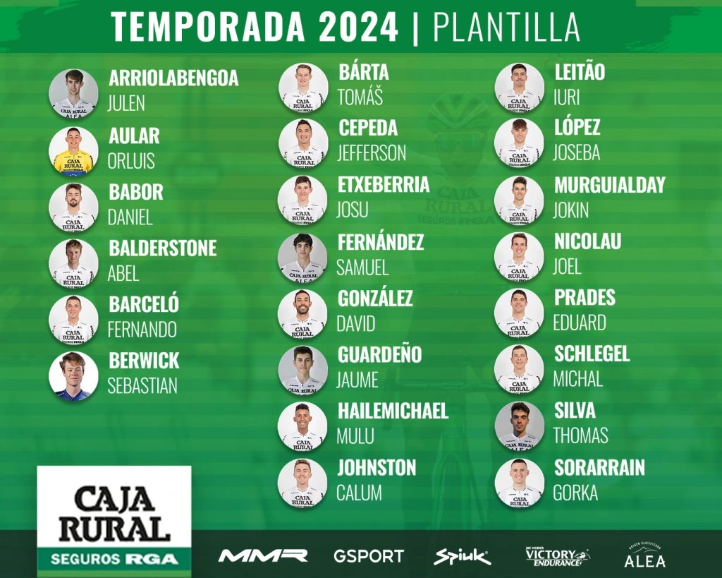 Veintidós ciclistas conforman el equipo que defenderá el maillot de Caja Rural-Seguros RGA profesional entre los que se encuentra el alteano Jaume Guardeño que acaba de dar el salto del amateur del filial del conjunto navarro. Debutará como Pro en el GP Castellón. En el filial está el también alicantino Dani Cepa, además de Estanislao Calabuig.