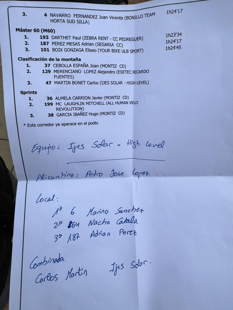 Christina Bragh Lorenzen se ha impuesto en féminas; Rubén Albelda, en júniors; Iván Gomar, en Sub 23; Carlos Martín, en Élite; Iván Castillo, en M30; Pedro José López, en M40; Geoffrey Luyssen, en M50; y Paul Darthet, en M60. Joan Cebolla se ha llevado la montaña y Javier Almela, los Sprints Especiales. El Ijes Solar ha sido la mejor escuadra.