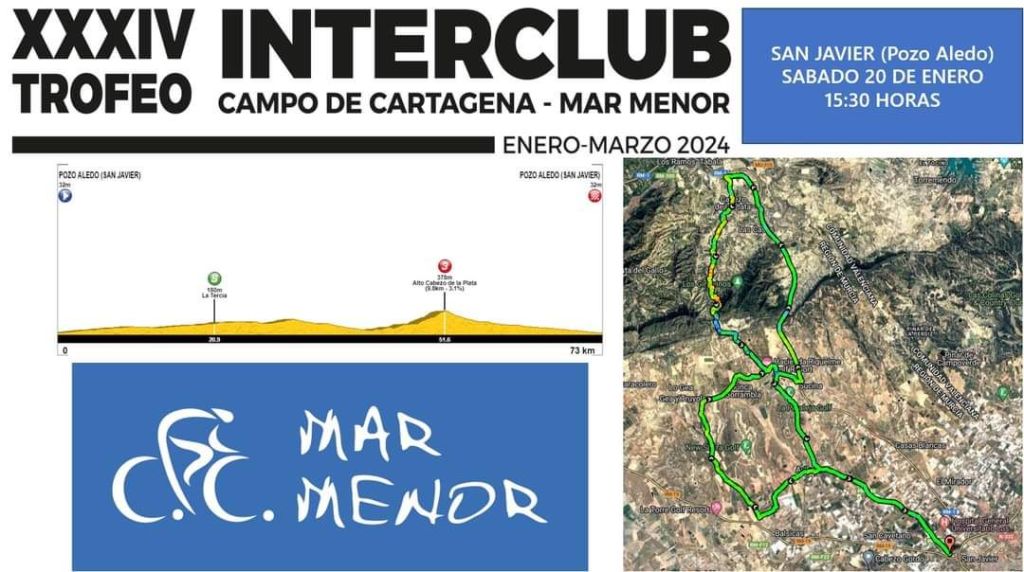 El Trofeo Interclub Campo de Cartagena – Mar Menor llega a San Javier para disputar la segunda etapa el sábado, 20 de enero, a las 15.30 horas. Serán 73 kilómetros de recorrido.