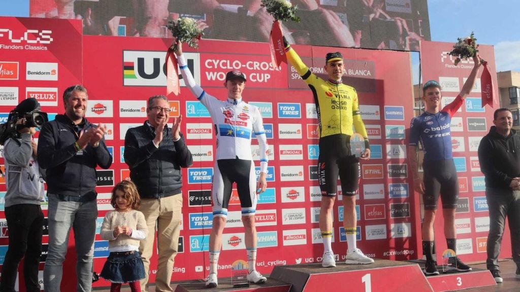 Una vuelta final espectacular permitió Aubin Sparfel imponerse en la prueba juvenil masculina, inauguración de la Copa del Mundo de Ciclocross UCI – Benidorm Costa Blanca 2024. El galo estuvo acompañado en el podio por Keije Solen (Países Bajos) y Jules Simon (Francia). Con este triunfo, Sparfel se coloca líder de la Copa del Mundo de Ciclocross UCI. Presencia de Luis Bernabéu, David Ivars y Asier Ortega en la carrera.