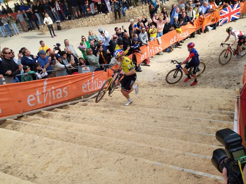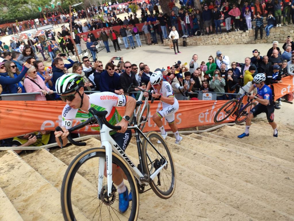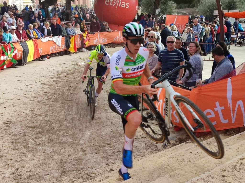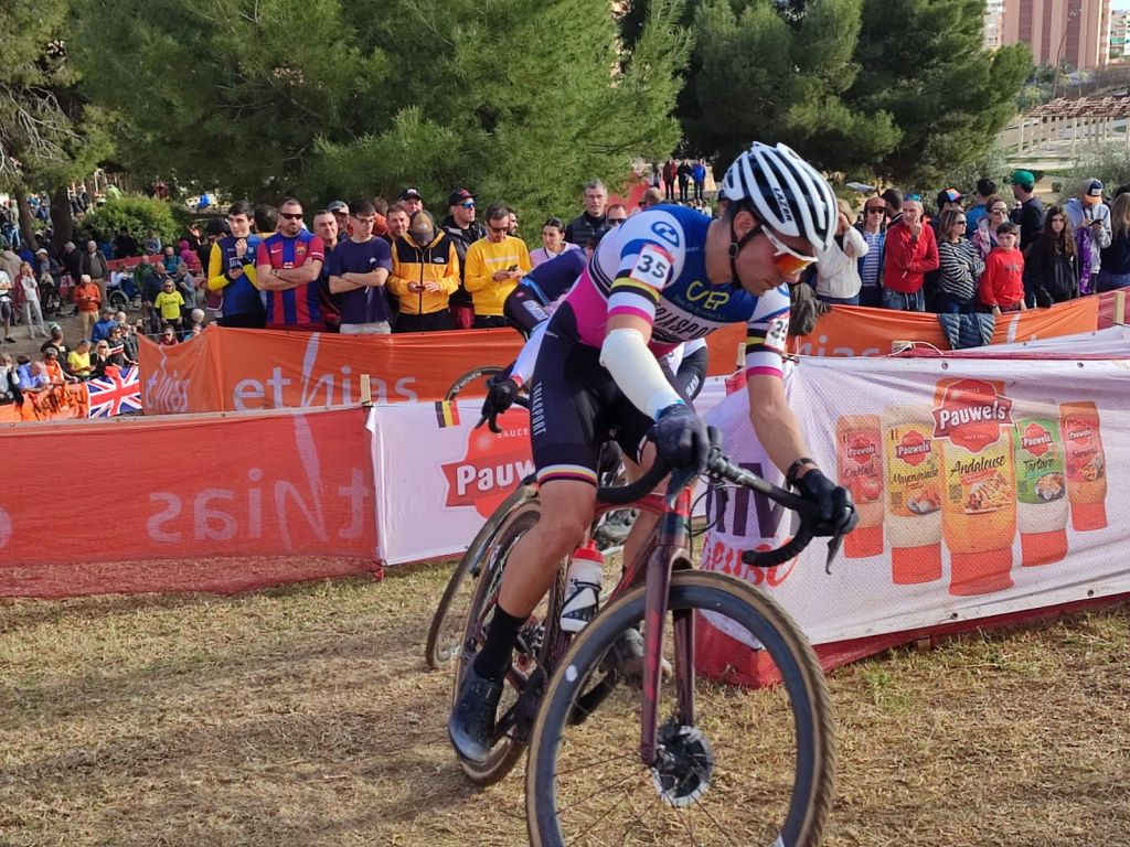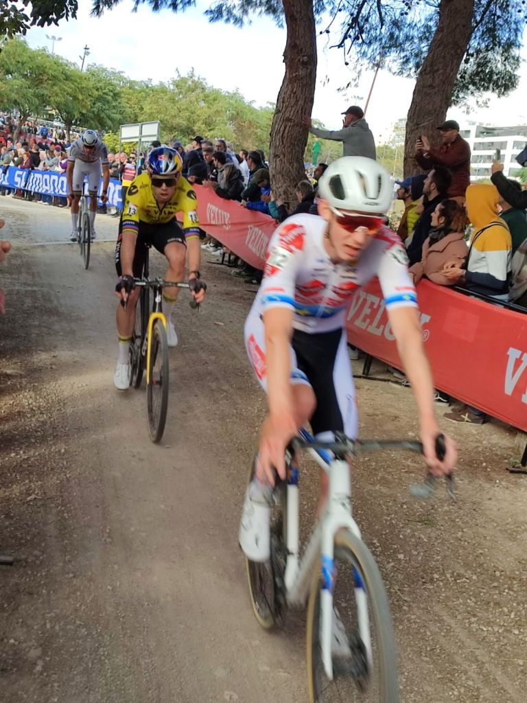 El duelo se convirtió en una batalla a cuatro en la quinta vuelta, cuando el británico Tom Pidcock (Ineos Grenadiers) y el belga Michael Vanthourenhout (Pauwels Sauzen-Bingoal) se invitaron a la fiesta… y en un duelo a nueve en la octava, cuando alcanzaron cabeza de carrera Eli Iserbyt (Pauwels Sauzen-Bingoal), Thibau Nys (Baloise-Trek), Toon Vandebosch (Crelan-Corendon), Niels Vandeputte (Alpecin-Deceuninck) y el campeón de España e ídolo local Felipe Orts (La Vila Joiosa-Neteo). Tras el paso por el arenero, un nuevo contratiempo obligaba a Van der Poel a una nueva exhibición que esta no vez no culminaba, forzado a conformarse con el quinto puesto.