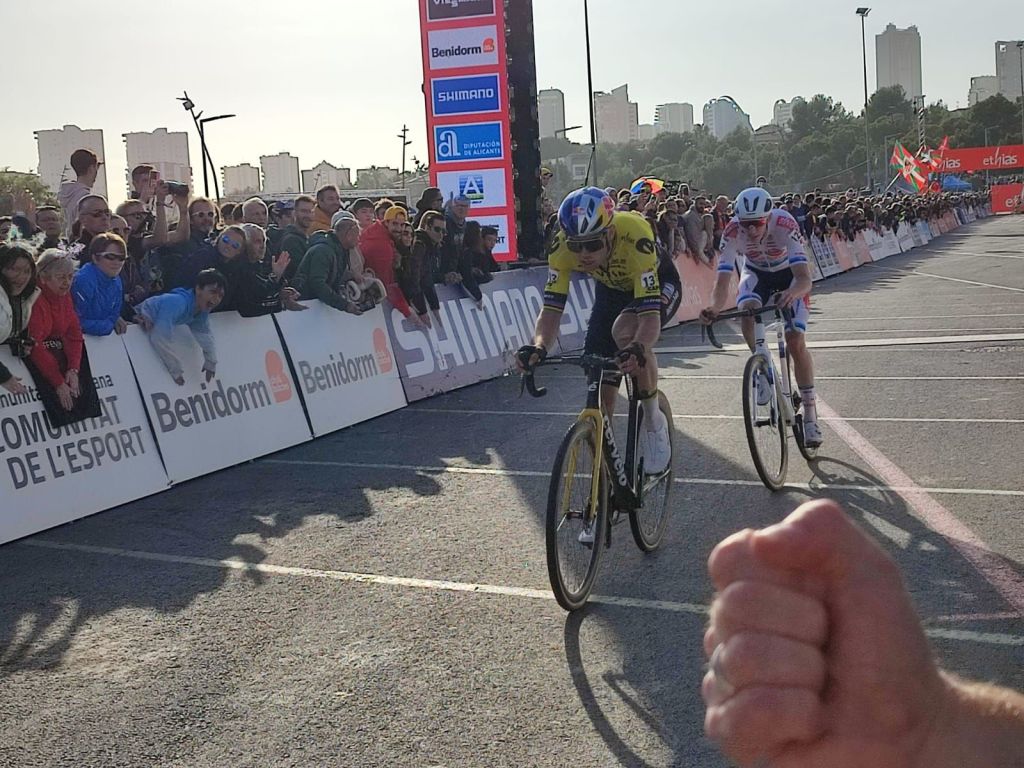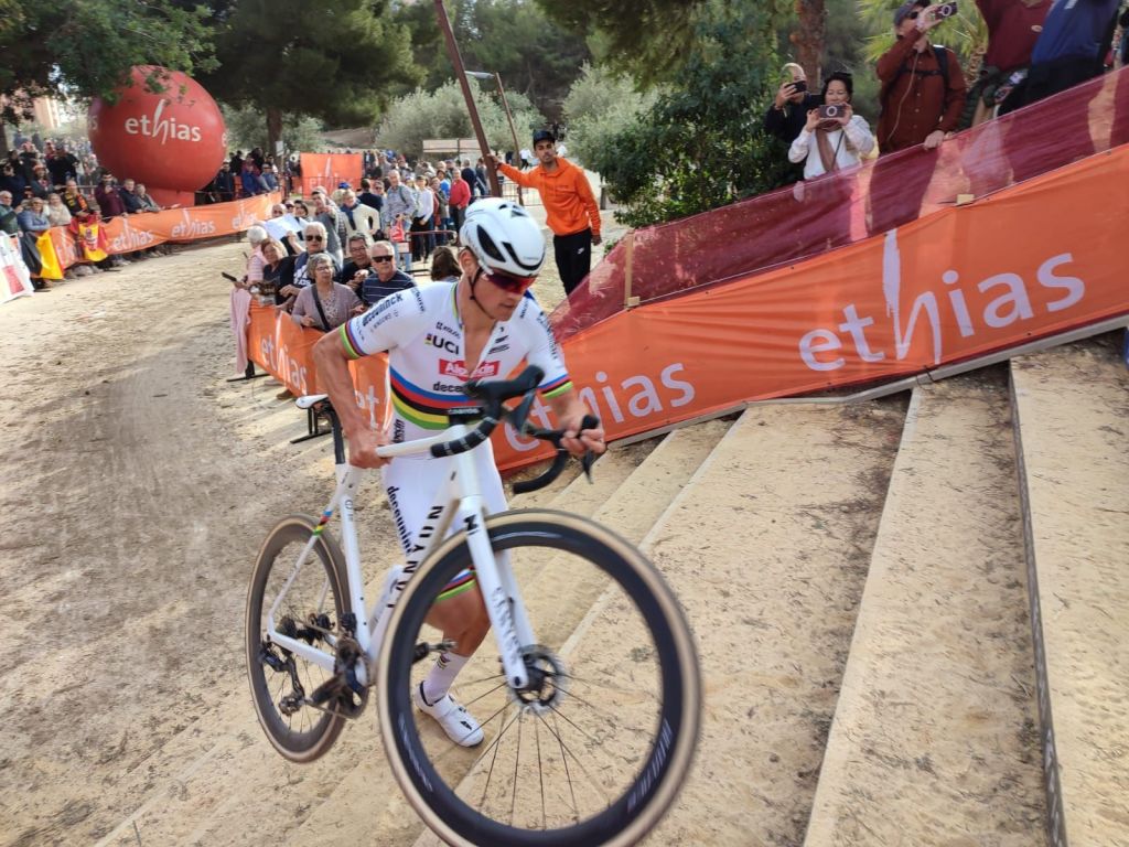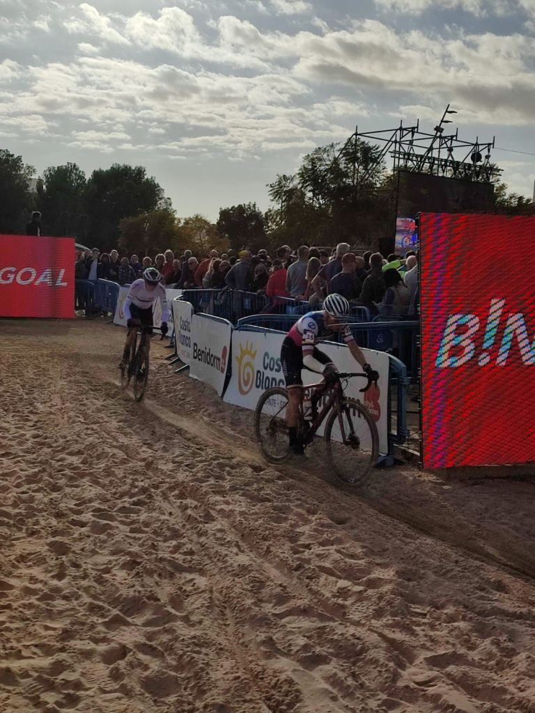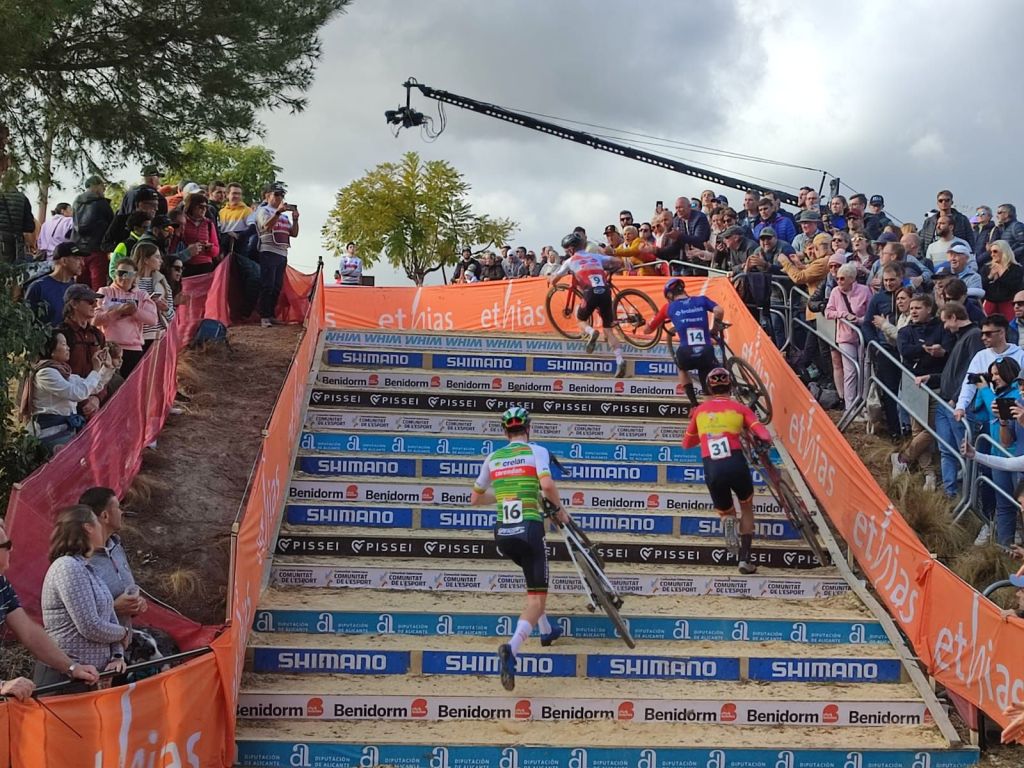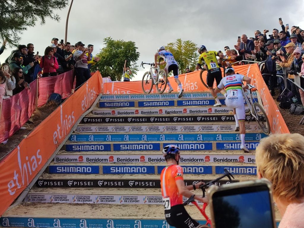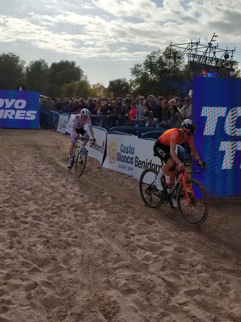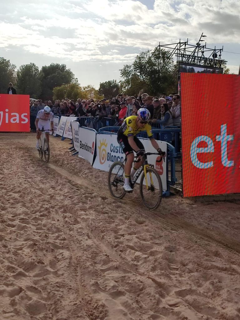 El belga Wout van Aert (Visma) ha ganado la prueba de la Copa del Mundo del Ciclocross en Benidorm, una prueba en la que el belga se aprovechó del problema mecánico que tuvo en la penúltima vuelta el gran favorito, el neerlandés Mathieu Van der Poel (Alpecin), que había ganado todas las carreras que había disputado esta temporada. El corredor de Visma | Lease a Bike cruzó la meta en solitario, por delante de Michael Vanthourenhout . Thibau Nys (Baloise Trek Lions) ha completado el podio. Felipe Orts ha terminado octavo delante de los suyos orgulloso de su resultado y, sobre todo, de la respuesta de sus paisanos. Toda una fiesta con el vilero como protagonista. Tras su memorable estreno en 2023, la Copa del Mundo de Ciclocross UCI – Benidorm Costa Blanca se superó este 21 de enero con una segunda edición apoteósica. Más de 16.000 espectadores pudieron disfrutar de una jornada ideal, con una meteorología idílica y unas carreras espectaculares. Felipe es el artífice de la explosión del Ciclocross en España y más contretamente en Benidorm.