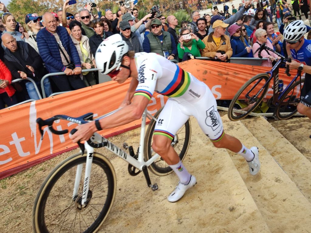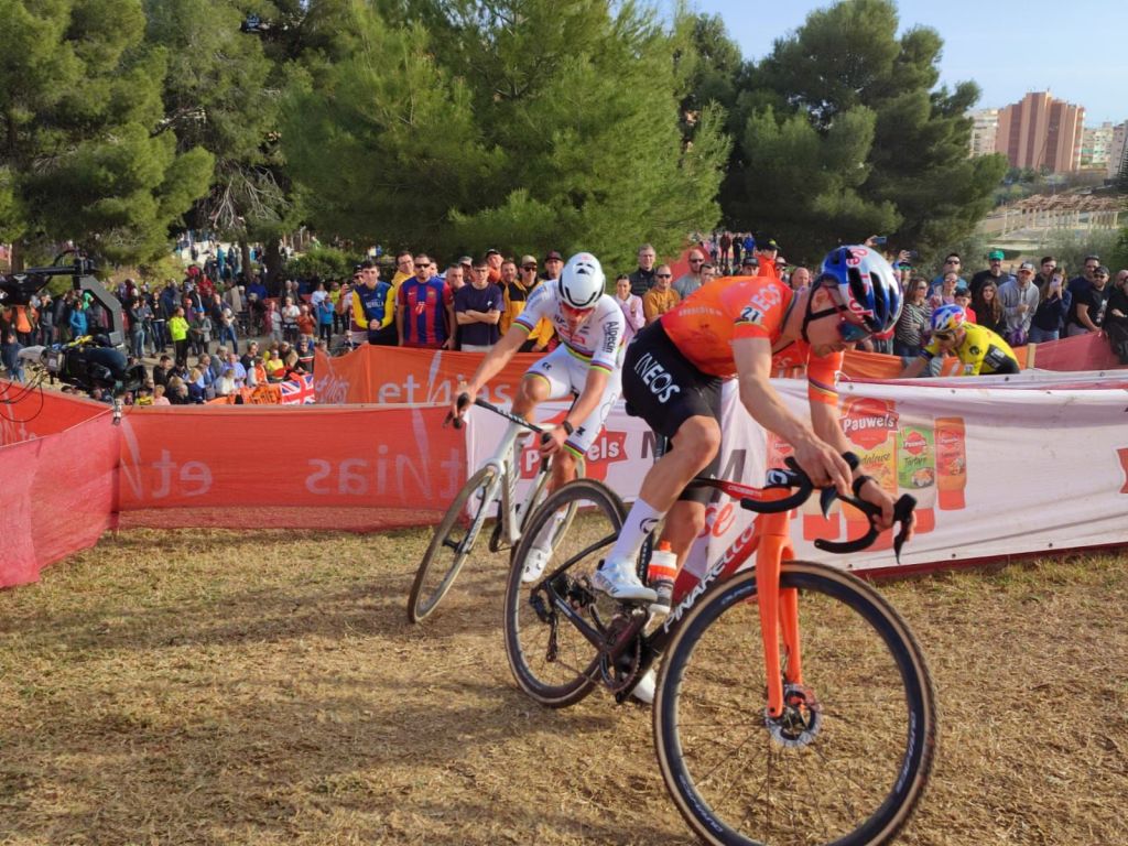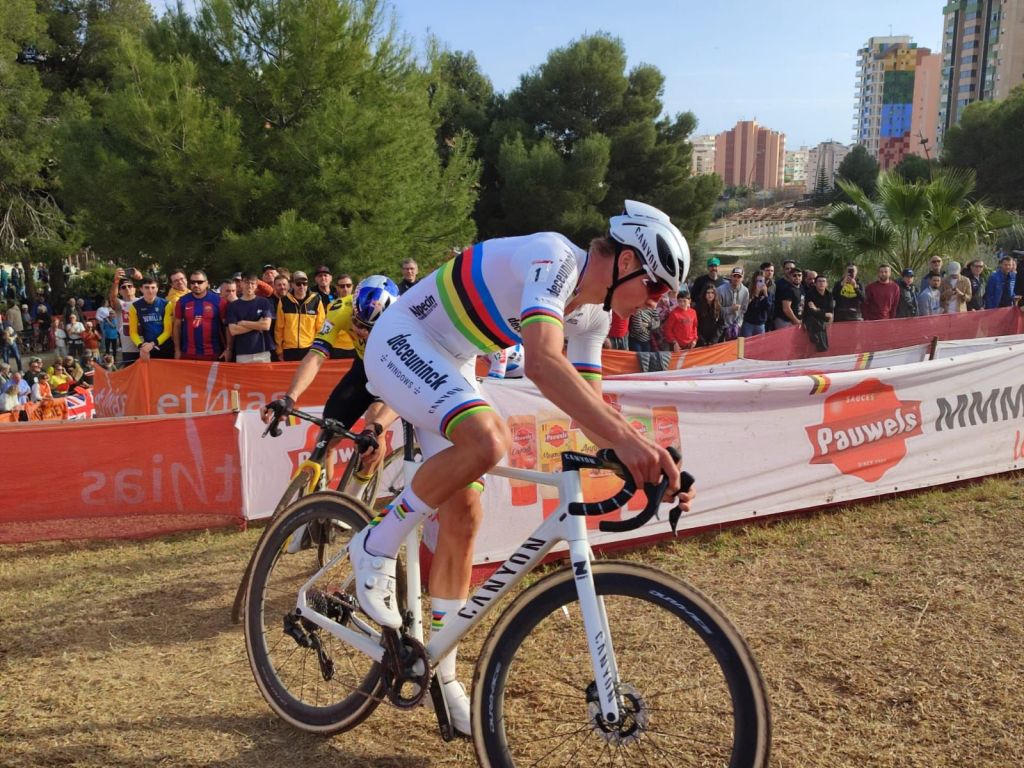 La prueba Elite masculina de la Copa del Mundo de Ciclocross UCI – Benidorm Costa Blanca 2024 deparó una de las carreras más emocionantes de la temporada invernal. El vigente campeón del mundo, defensor de la victoria del año pasado y máximo favorito tras ganar todas las pruebas que ha disputado esta campaña, Mathieu Van der Poel (Alpecin-Deceuninck), sufría un problema mecánico en la primera de las nueve vueltas que le abocaba a las catacumbas de la carrera. La frenética remontada del neerlandés culminó mediada la cuarta vuelta con un adelantamiento para los anales del ciclocross al belga Wout van Aert (Visma | Lease a Bike), que lideraba la carrera y se veía jibarizado en pleno repecho largo del circuito.