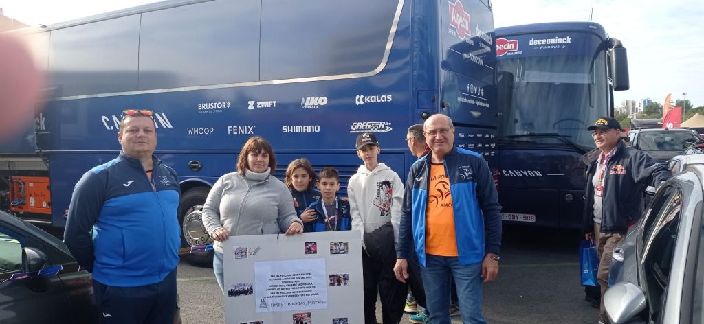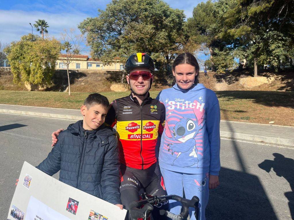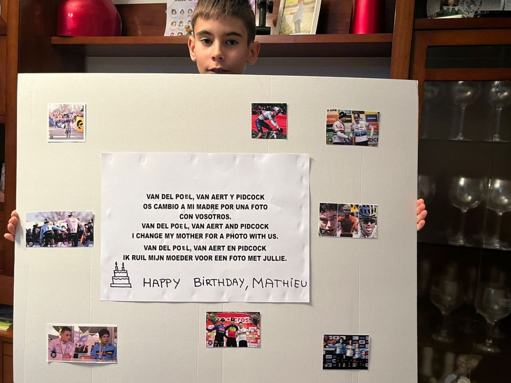 El joven ciclista de la PC La Forca de Aiacor, Hugo Calatayud, no pudo cumplir su sueño de hacerse una foto con sus grandes ídolos como Mathieu Van der Poel y Wout Van Aert a pesar de estar dos días seguidos buscando esa ansiada imagen. «Cambio a mi madre por una foto con vosotros» se podía leer en un cartel que mostró este fin de semana en el circuito en el que se disputó la Copa del Mundo de CX.