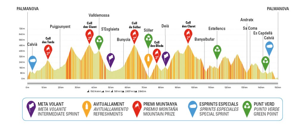 Más allá del casi seguro final al sprint del Trofeo Palma, todo parece bastante abierto de cara al resto de jornadas. Comenzando el miércoles por un Trofeo Calvià en el que se deben superar cinco pasos puntuables dentro de un trazado exigente de media montaña y continuando el jueves por el Trofeo Ses Salines – Felanitx, que apunta a una posible resolución favorable para los velocistas, si bien no tan clara como la del domingo.