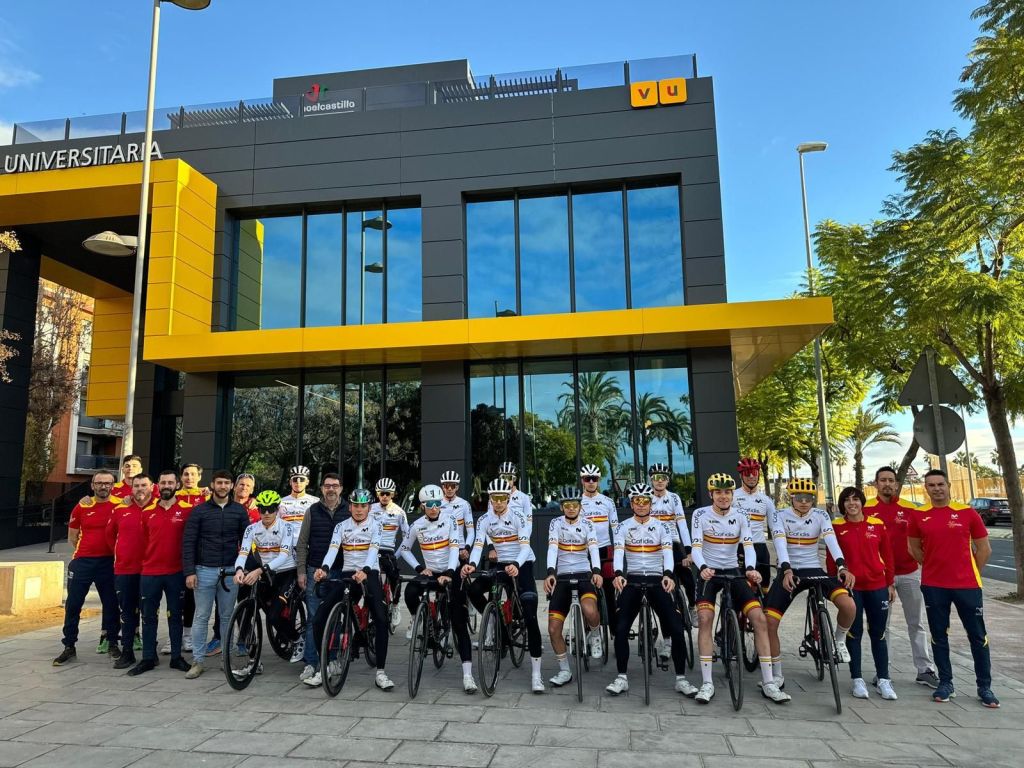Los ciclistas júniors de la Selección Española de carretera han vivido en San Vicente del Raspeig durante el pasado largo fin de semana una fructífera concentración de inicio de temporada para sentar las bases del que será el ejercicio 2024 bajo la batuta del alicantino Manuel Mateo y de toda su estructura. «Estamos muy contentos todos tanto por el comportamiento y actitud de los chavales, como por el trabajo realizado «, apunta el seleccionador nacional antes de explicar que «el jueves fueron llegando los ciclistas y se hizo un entrenamiento suave para soltar piernas, además de ajustar las bicicletas, tanto de crono como de carretera. Al día siguiente, partimos el bloque en dos grupos. Unos corredores realizaron los diferentes test de valoraciones fisiológicas en el Centro de Investigación de la UMH de Elche, y los otros, se enfrentaron a una sesión de crono por equipos en el velódromo Manuel Guijarro y en ruta. Y, por la tarde, realizamos lo mismo, pero cambiando los grupos».