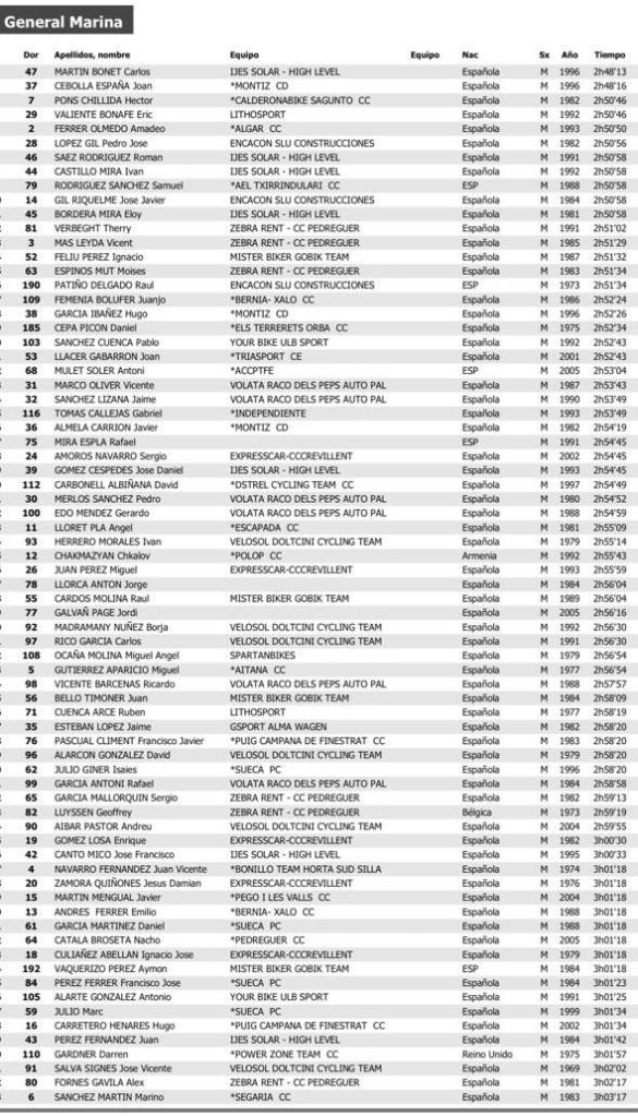 Carlos Martín (Ijes Solar) se ha impuesto en Bolulla en la segunda jornada de la Volta La Marina que ha tenido salida y meta en Bolulla. Joan Cebolla (Montiz CD) ha sido segundo y Robin Kullin, tercero. Martín ha sido el primer Élite-Sub23; Amadeo Ferrer (Algar) se ha impuesto en M30; Héctor Pons (Calderonabike), en M40; Raúl Patiño (Encacon), en M50; y Hanna Elois Tamoudi (La Carloteña), en féminas.