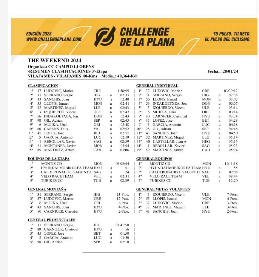 – Etapa 3 – 28/01 – VILAFAMÉS – Clasificaciones