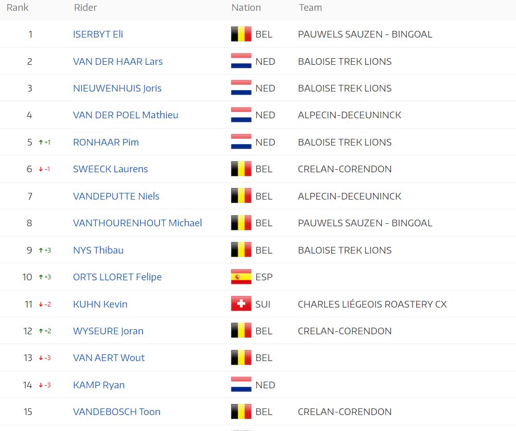 La Unión Ciclista Internacional (UCI) ha actualizado el ránking mundial de ciclocrós, en el que Felipe Orts se cuela en la 10ª posición tras su gran fin de semana con dos top-10 en Bélgica y Holanda.