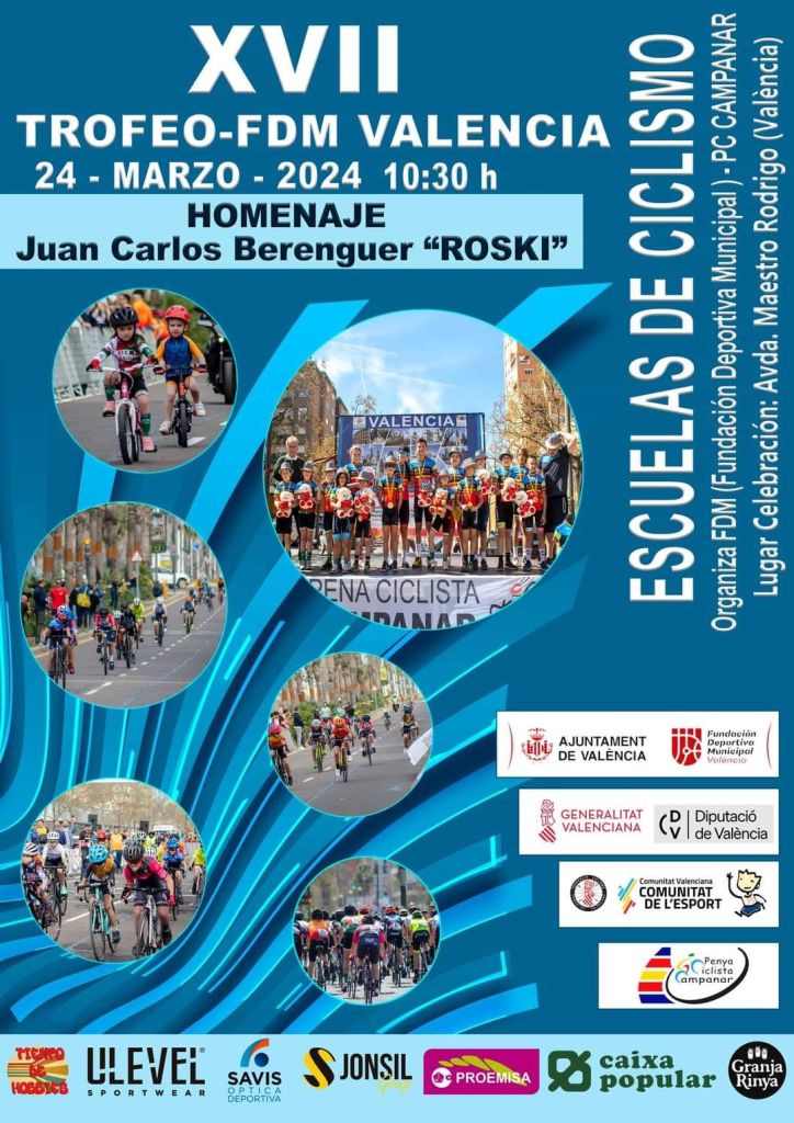 La Peña Ciclista Campanar organizará el 24 de marzo una nueva edición del Trofeo Fundación Deportiva Municipal (FDM) Valencia, cita para que los más pequeños disfruten del ciclismo en una reunión de escuelas que se organizará en la Avenida Maestro Rodrigo y que este año servirá para rendir un merecido homenaje a Juan Carlos Berenguer «Roski».