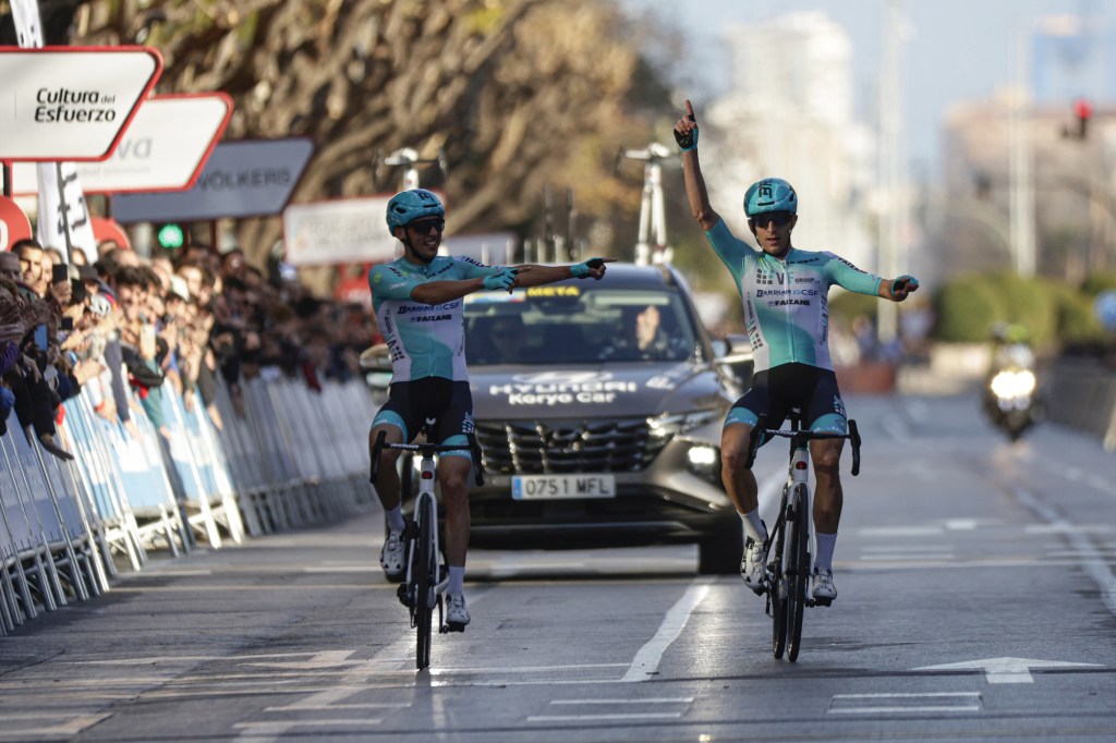 La subida al Desert de les Palmes, el plato fuerte del día, iba a decidir el destino de esta primera etapa de la 75 VCV – Volta a la Comunitat Valenciana Gran Premi Banc Sabadell. Y ahí es cuando los dos integrantes del Bardiani han lanzado su apuesta. Eran los dos únicos que compartían equipo en la fuga y lo han hecho valer con un ataque conjunto a 500 metros del comienzo del puerto. Ambos se han distanciado de la fuga y han comenzado una batalla por la victoria con rocambolesco final.