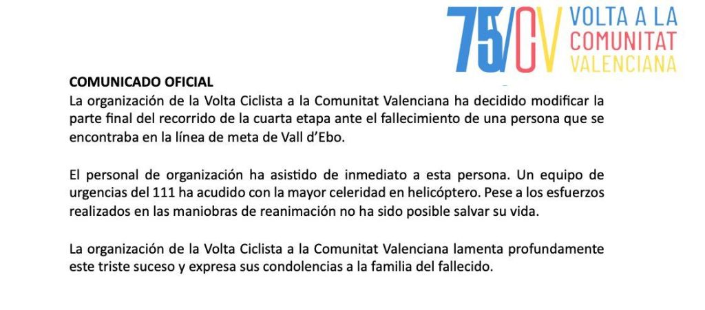 Por motivos de fuerza mayor, la etapa ha tenido que verse recortada en su tramo final y la meta se ha ubicado precisamente en la cima de El Miserat. Allí, McNulty ha sido el más rápido por delante de Vlasov y Buitrago, alzándose con el liderato y confirmándose como el máximo favorito a la victoria final. Este domingo, etapa final entre Bétera y el Puerto de Valencia.