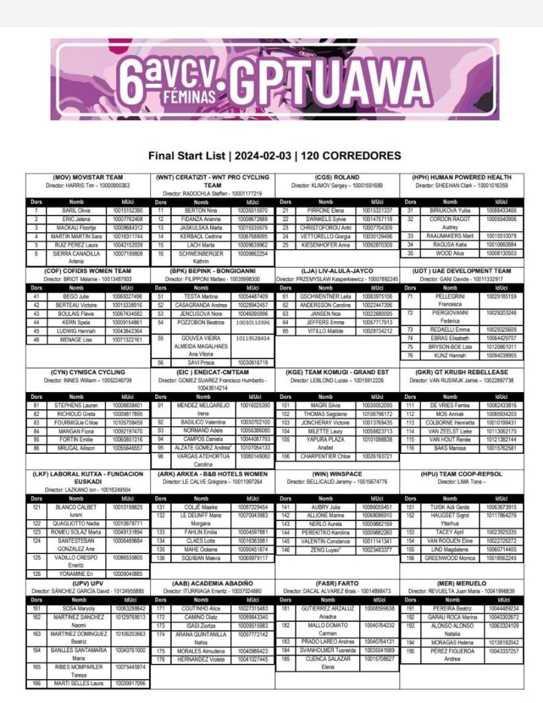 Una VCV Féminas que nació en 2019 y que este año, por primera vez, cuenta con un patrocinador privado que da nombre a la carrera. Tuawa, by Global Omnium, que ya patrocina el maillot de la regularidad de la VCV – Volta a la Comunitat Valenciana Gran Premi Banc Sabadell, y que este 2024 ha decidido volcarse con la VCV Féminas. Una gran noticia para el ciclismo femenino y para una prueba pionera, pues desde su nacimiento ha igualado en ruta y premios económicos a la prueba masculina, algo inédito hasta la fecha en España.