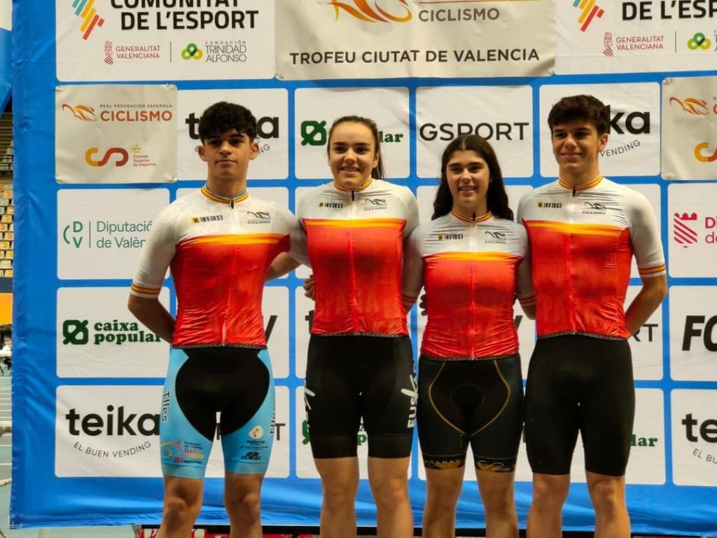 Triunfos en la ultima jornada, en el Trofeu Ciutat de València disputado en el velódromo Luis Puig, de Héctor Álvarez, Leyre Almena, Vicent Andres, Amanda Miravet, Carrión y Pepe Arqués