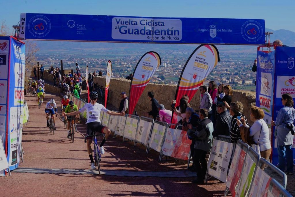 César Pérez López (Murcia, 23-11-2004) logró el domingo en la meta situada en el Castillo de Lorca, en la tercera y última etapa de la Vuelta Ciclista al Guadalentín, su primer triunfo como corredor y además estrenó el palmarés del equipo Essax Grupo Arrfran en la temporada 2024. Un 4 de febrero que no olvidará nunca. No en vano, el mejor puesto en 2023, con el maillot del Valverde Team, fue una tercera plaza en el GP de Naquera. Además se llevó el maillot de primer joven con el que se vistió en la jornada inicial de la ronda de la Región de Murcia con final en Puerto Lumbreras en la que terminó segundo. «Increíble, el primer triunfo con el Essax y en mi estancia en la categoría. No puedo agradecérselo más al equipo que me ha arropado en todo momento y sin ellos uniera sido imposible», señalaba el ciclista murciano tras un inicio fulgurante de temporada que espera tener continuidad. César Pérez, como demostró en las rampas del Castillo de Lorca, es un «escalador explosivo». Su ídolo de la infancia ha sido Alejandro Valverde, pero ahora pone su mirada en Mathieu van der Poel.