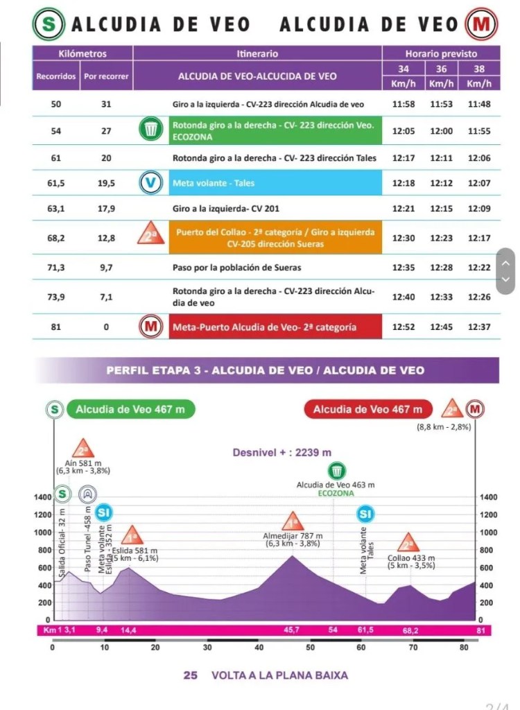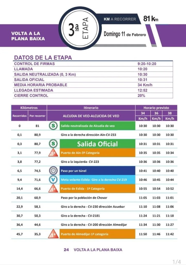 Etapa 2. Sábado, 10 de febrero. Vila-Real – Alcudia de Veo. 83km. 12h.