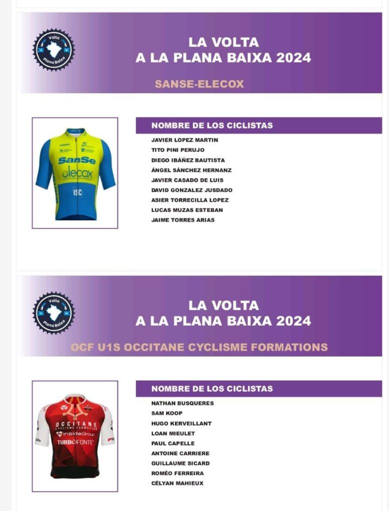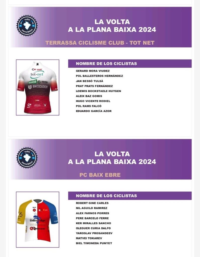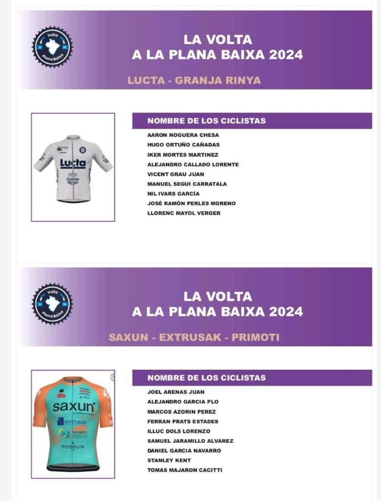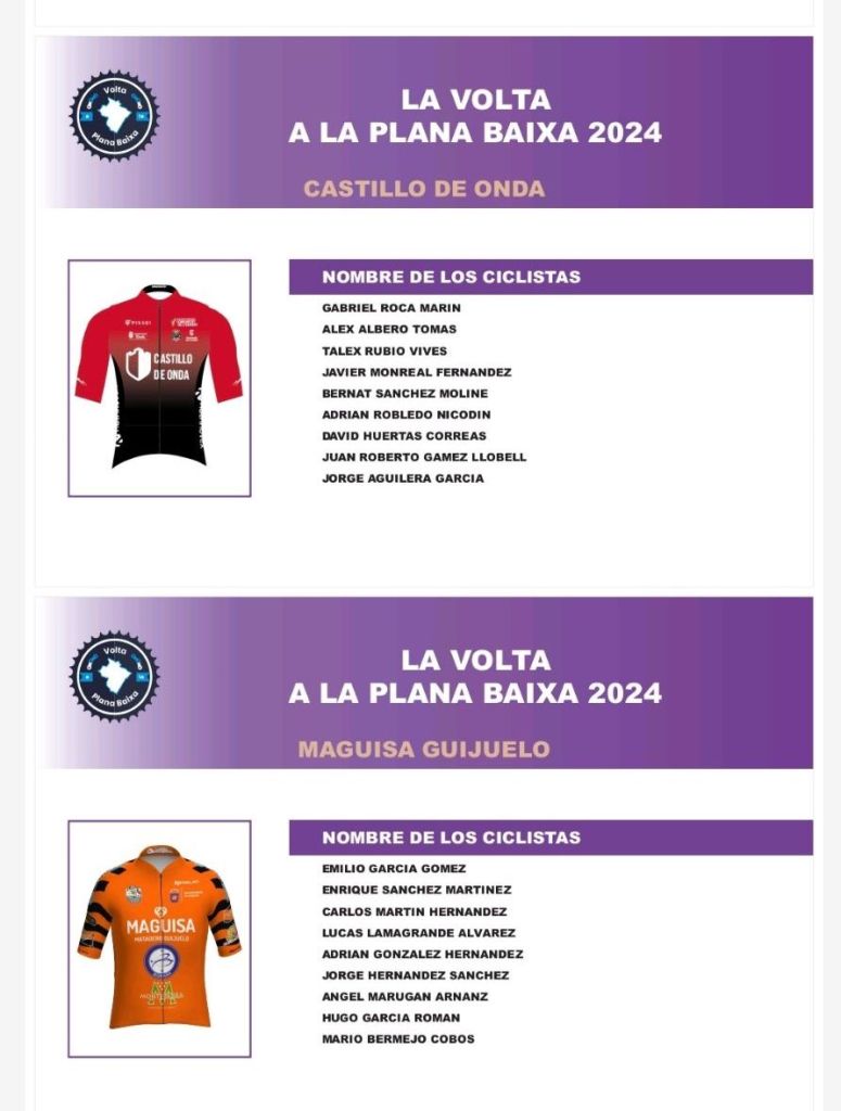 La Volta a la Plana Baixa para corredores júniors volverá a disputarse los días 9, 10 y 11 de febrero de 2024 de la mano de Cicloclinic CC y TBG La Plana con la presencia de los tres equipos alicantinos. Burriana dará el banderazo de salida a dicha carrera de carácter nacional que tendrá salida y meta en la localidad castellonense y contará con 72 kilómetros. El sábado, 10 de febrero, el pelotón partirá de Vila-Real y finalizará en Alcudia de Veo tras 83km de trazado y un final exigente. Y, finalmente, en 11 de febrero, Alcudia de Veo acogerá una jornada de 81 kilómetros en la que se decidirán los distintos maillots de la prueba.