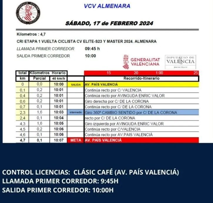Etapa 1. 17 Febrero. Almenara. CRI. 4,7km. 10h, primer corredor.