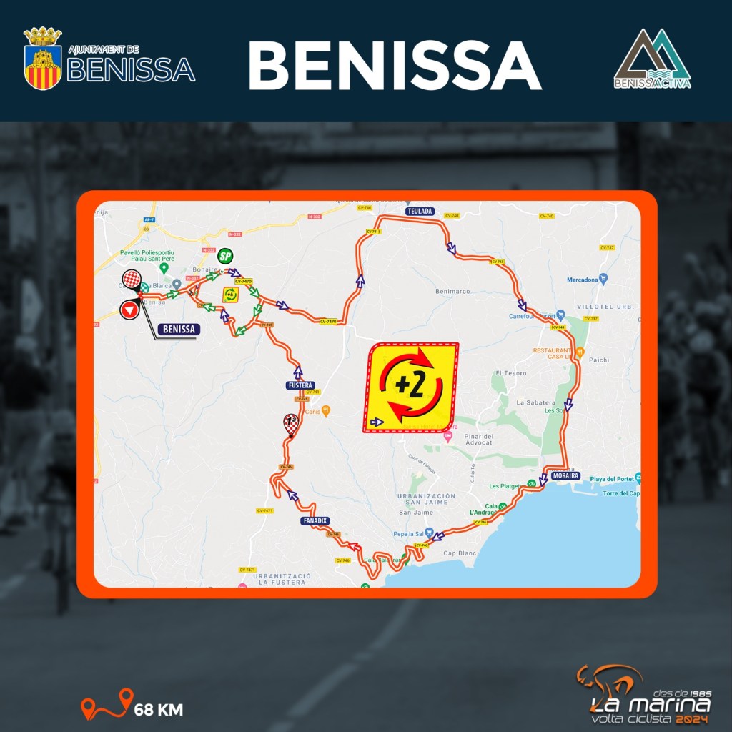 Benissa acoge el domingo, día 11 de febrero, la cuarta prueba de la Volta Ciclista La Marina. Cuenta con 68 kilómetros de recorrido. La salida es a las 10 horas. El pelotón deberá afrontar dos Sprints Especiales y otros dos pasos por el Alto de la Fustera. Carlos Martín llega de líder a Benissa, por delante de Joan Cebolla y de Eric Valiente. Martín lleva también el maillot de la montaña y la regularidad, y, Jaime Sánchez, el de las metas volantes.