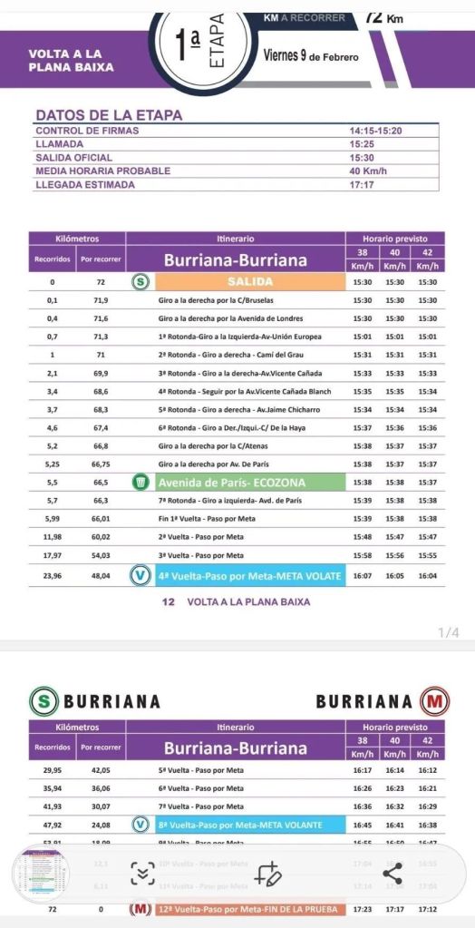 Etapa 1. Viernes, 9 de febrero. Burriana-Burriana. 72 km. 15.30h.