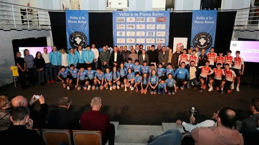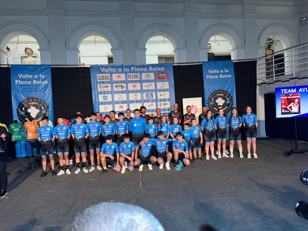 El jueves la Casa de la Cultura de Burriana acogio la presentación oficial de la Vuelta Ciclista a la Plana Baixa que comienza hoy, de la escuela de ciclismo Cicloclinic, además del equipo cadete TBG Lithosport y el equipo Júnior anfitrión, el Ayuso Team UAE.